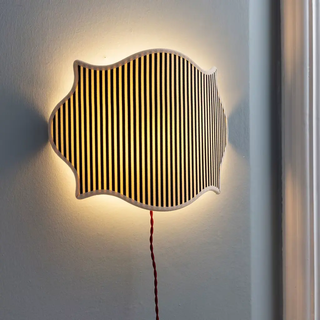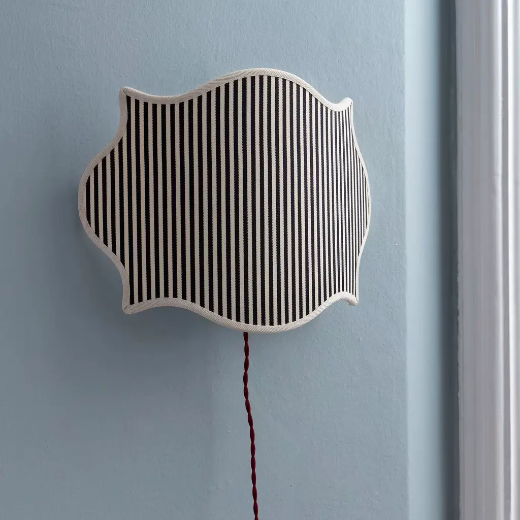 The “Alghero” lamps are inspired by the serene landscapes of the Sardinian countryside. This collection features the classic stripe pattern of “Dialogo” fabric by Dedar, enhancing both modern and traditional decor. Each lamp is crafted with a cotton fabric lampshade, an elegant lamp holder, and a durable fabric cable. They use an E27 or E26 bulb holder (bulb not included) and come with a 2-meter bordeaux silk-like braided cable. It has a switch on the cable and it is not dimmable.