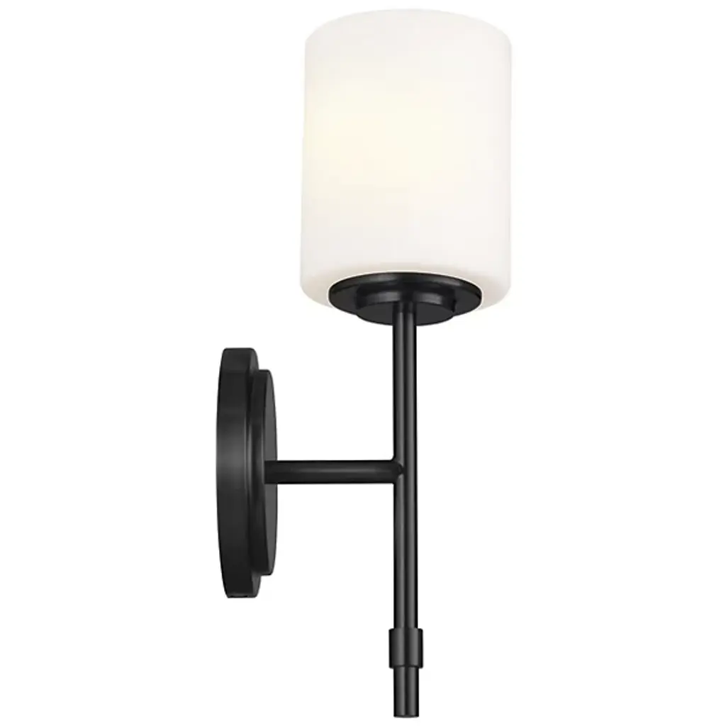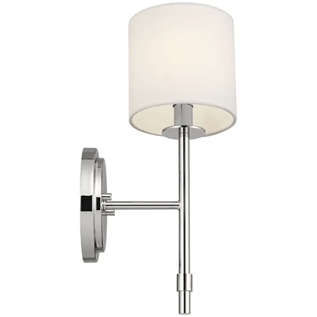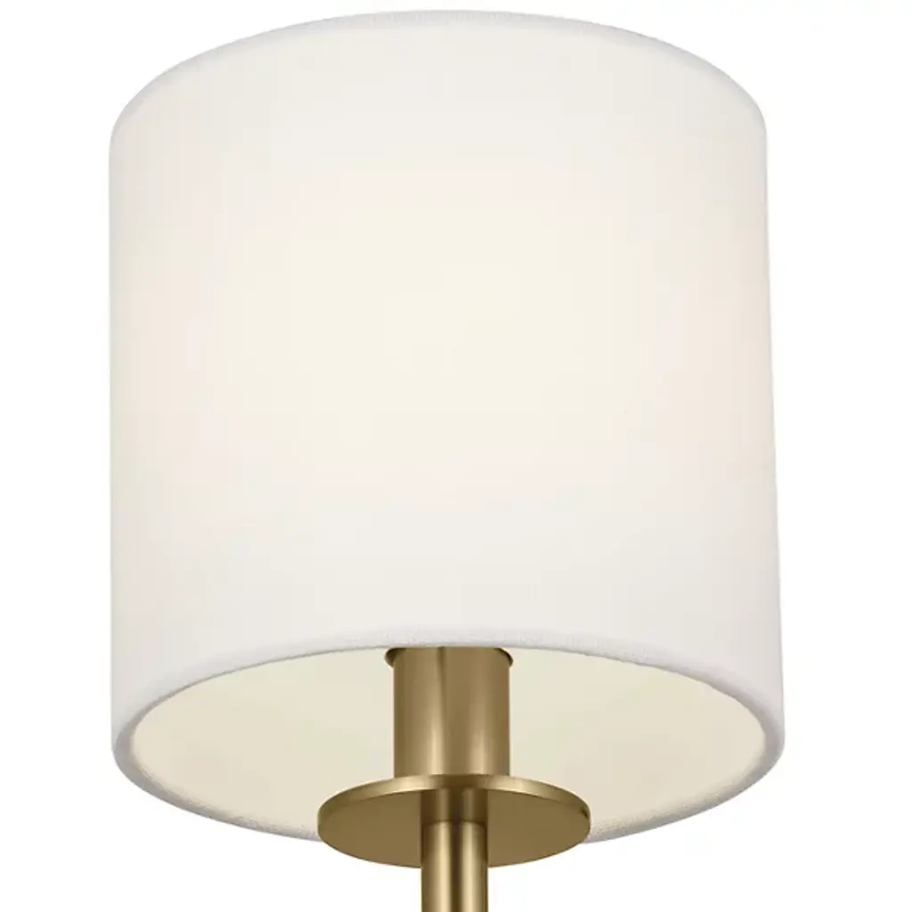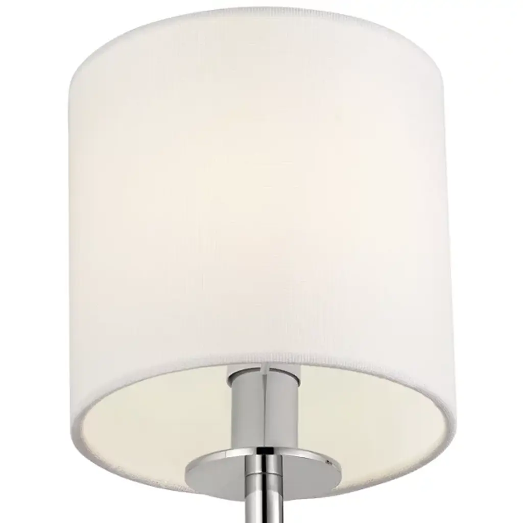 The Ali Wall Sconce by Kichler gives your home a sleek mid-century modern appearance. A cylindrical, white fabric shade rests overtop a steel plate supported by a metallic rod. An arm attached to a backplate at your wall bolsters this rod, effortlessly balancing a drum-shaped shade. Inside of this sconce’s shade sits an incandescent bulb that emanates light throughout your indoor layout. This sconce is fixed in place so that your most frequented spaces maintain illumination on an ongoing basis.