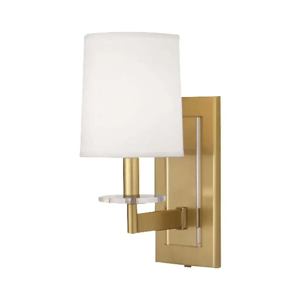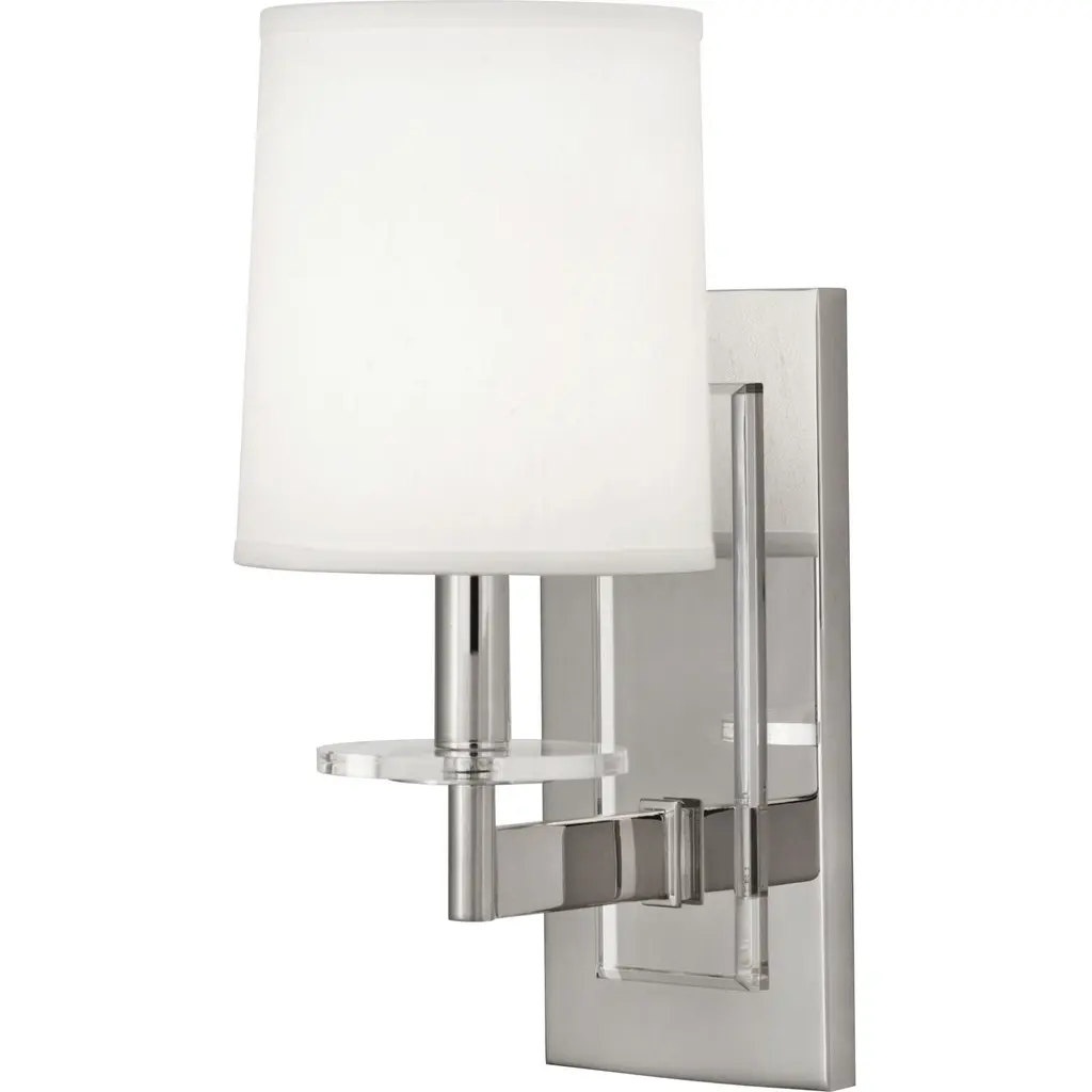 Refined but playful, all it takes is something as simple as a lucite bobeche to transform the Robert Abbey Alice Wall Sconce into something totally unique. Casually resting atop a strong arm, a Pearl Dupoini fabric shade gracefully completes the look. Also available in a two lights option. Part of the lucite-laden Alice family of lighting from Robert Abbey.