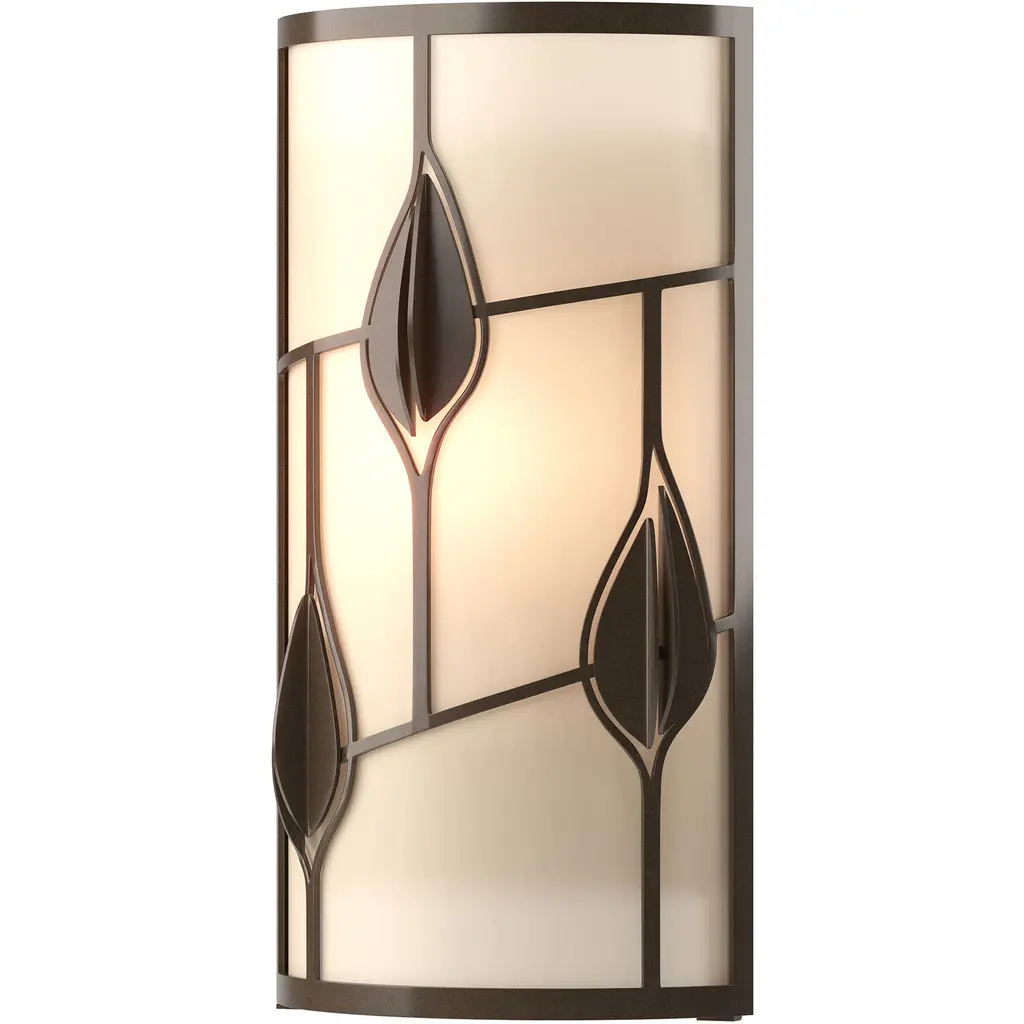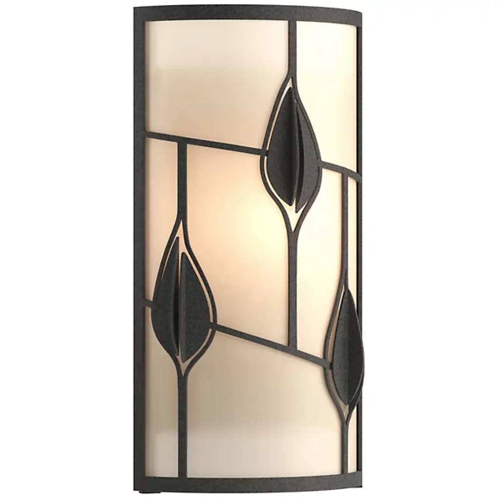 Delicate leaves of handcrafted steel seem to bloom across the white art glass of Alison's leaves sconce. With a design inspired by nature, it elicits the feeling of getting back to one's roots. All Hubbardton Forge products are hand-crafted to last one at a time in Vermont.
