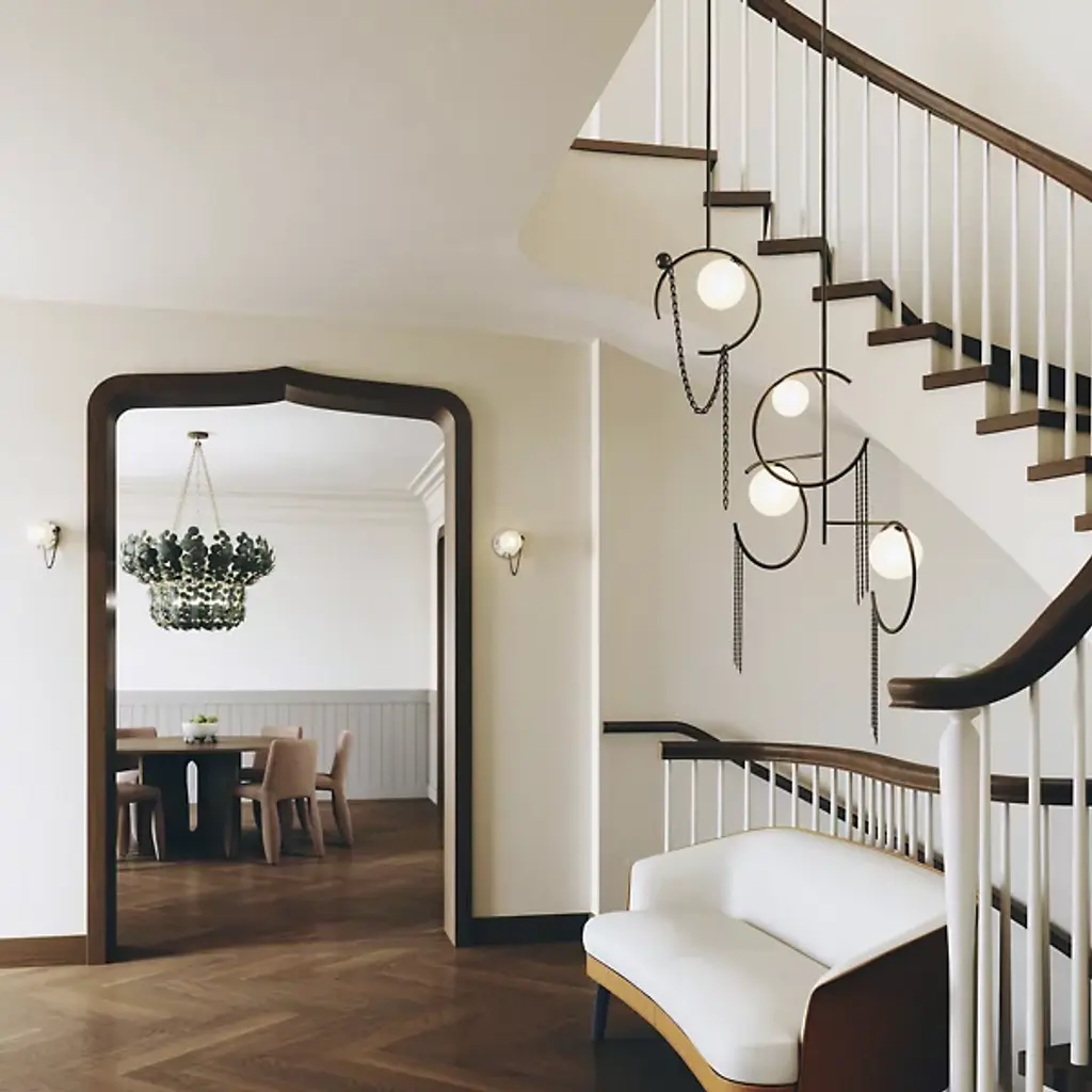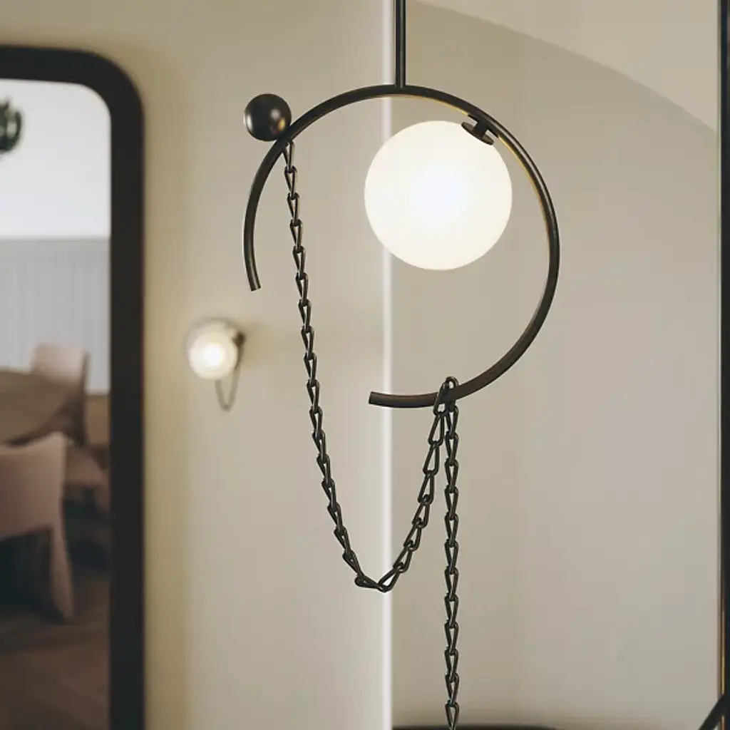 The Alla Wall Sconce from Blueprint Lighting provides a lasting element of artistic luxury to wall spaces, accented by refined sculptural elements. An inspired creation from the mind of designer Emily Del Bello, its simple form is produced with fine materials, the circular wall mount fashioned from naturally-veined marble extending a small metal structure with a short rod out to the side. The arm is accented by a length of fine chain that is inspired by pearl earrings from Christian Dior, with the spherical shade of handblown glass reducing the bright glare from the lamping. The translucent shade medium transforms it into an even glow that casts a warm, vibrant glow across the rich structure and its surroundings, artfully pairing simplicity and sophistication for an enduring and artistic appeal.