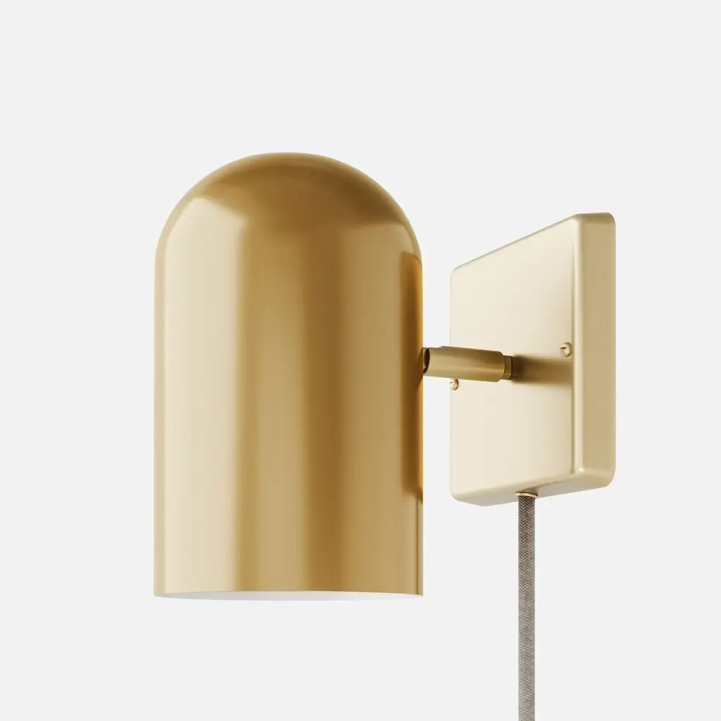 As part of our Benchmade line, the Allegheny Sconce is equally suited for both outdoor and indoor applications. Ideal for illuminating exteriors, hallways, and works of art, this classic sconce is our luxurious take on utilitarian style. From our factory in Portland, the square canopy and capsule-style shade get finished in a ’70s-inspired color palette. Learn how to install a plug-in wall sconce and choose perfect wall sconce placement on our blog.