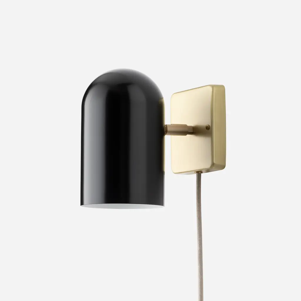 As part of our Benchmade line, the Allegheny Sconce is equally suited for both outdoor and indoor applications. Ideal for illuminating exteriors, hallways, and works of art, this classic sconce is our luxurious take on utilitarian style. From our factory in Portland, the square canopy and capsule-style shade get finished in a ’70s-inspired color palette. Learn how to install a plug-in wall sconce and choose perfect wall sconce placement on our blog.