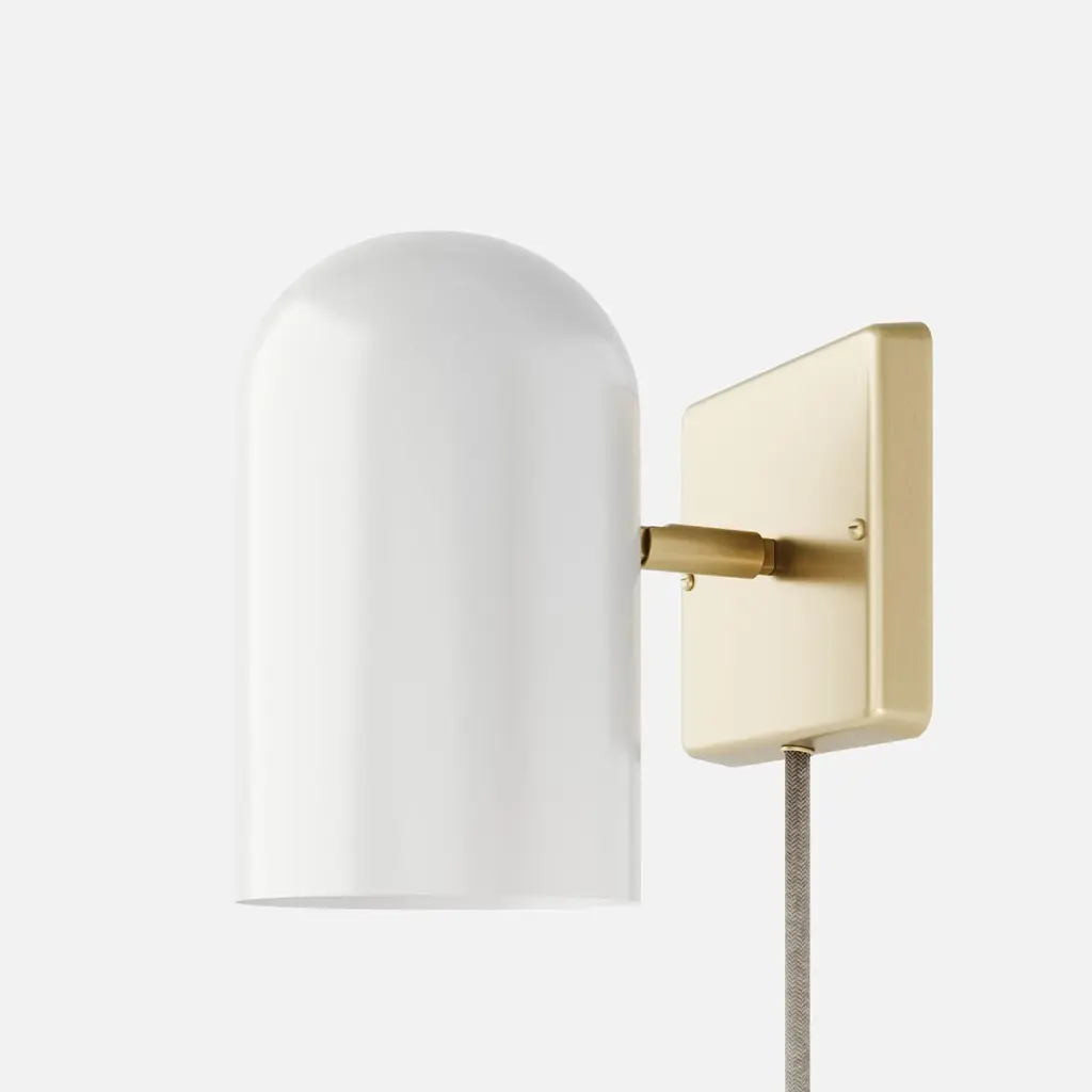 As part of our Benchmade line, the Allegheny Sconce is equally suited for both outdoor and indoor applications. Ideal for illuminating exteriors, hallways, and works of art, this classic sconce is our luxurious take on utilitarian style. From our factory in Portland, the square canopy and capsule-style shade get finished in a ’70s-inspired color palette. Learn how to install a plug-in wall sconce and choose perfect wall sconce placement on our blog.