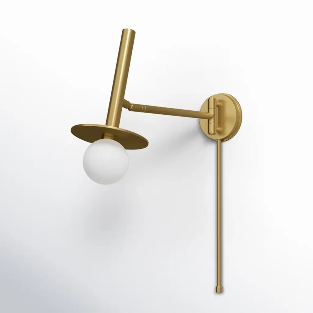 Allegra Single Light Glass Steel Dimmable Plug-In Swing Arm Sconce