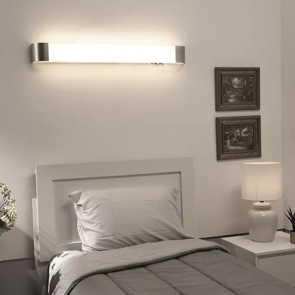 A classy piece made to meet contemporary needs. The simple structure of the AFX Allen LED Overbed Light Fixture presents superb lighting and incredible utility, with a 4-way pull switch that adapts the LED glow to personal preference. A long Acrylic shade spreads light evenly into the space and over the surfaces below. At either end, Steel caps give the structure beautiful symmetry and provide an appealing contrast between the warm shade and the cooler Metal. The pull switch dangles subtly to one side, a simple ball chain that doesn’t compromise the sleek uniformity of the structure. A sconce that’s unassuming and innovative, this fixture delivers excellent lighting that fills a bedroom however it is needed.