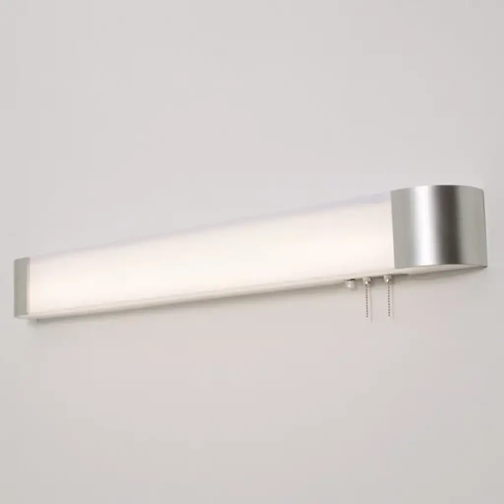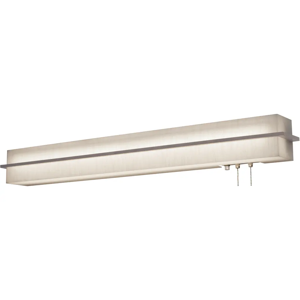 A classy piece made to meet contemporary needs. The simple structure of the AFX Allen LED Overbed Light Fixture presents superb lighting and incredible utility, with a 4-way pull switch that adapts the LED glow to personal preference. A long Acrylic shade spreads light evenly into the space and over the surfaces below. At either end, Steel caps give the structure beautiful symmetry and provide an appealing contrast between the warm shade and the cooler Metal. The pull switch dangles subtly to one side, a simple ball chain that doesn’t compromise the sleek uniformity of the structure. A sconce that’s unassuming and innovative, this fixture delivers excellent lighting that fills a bedroom however it is needed.