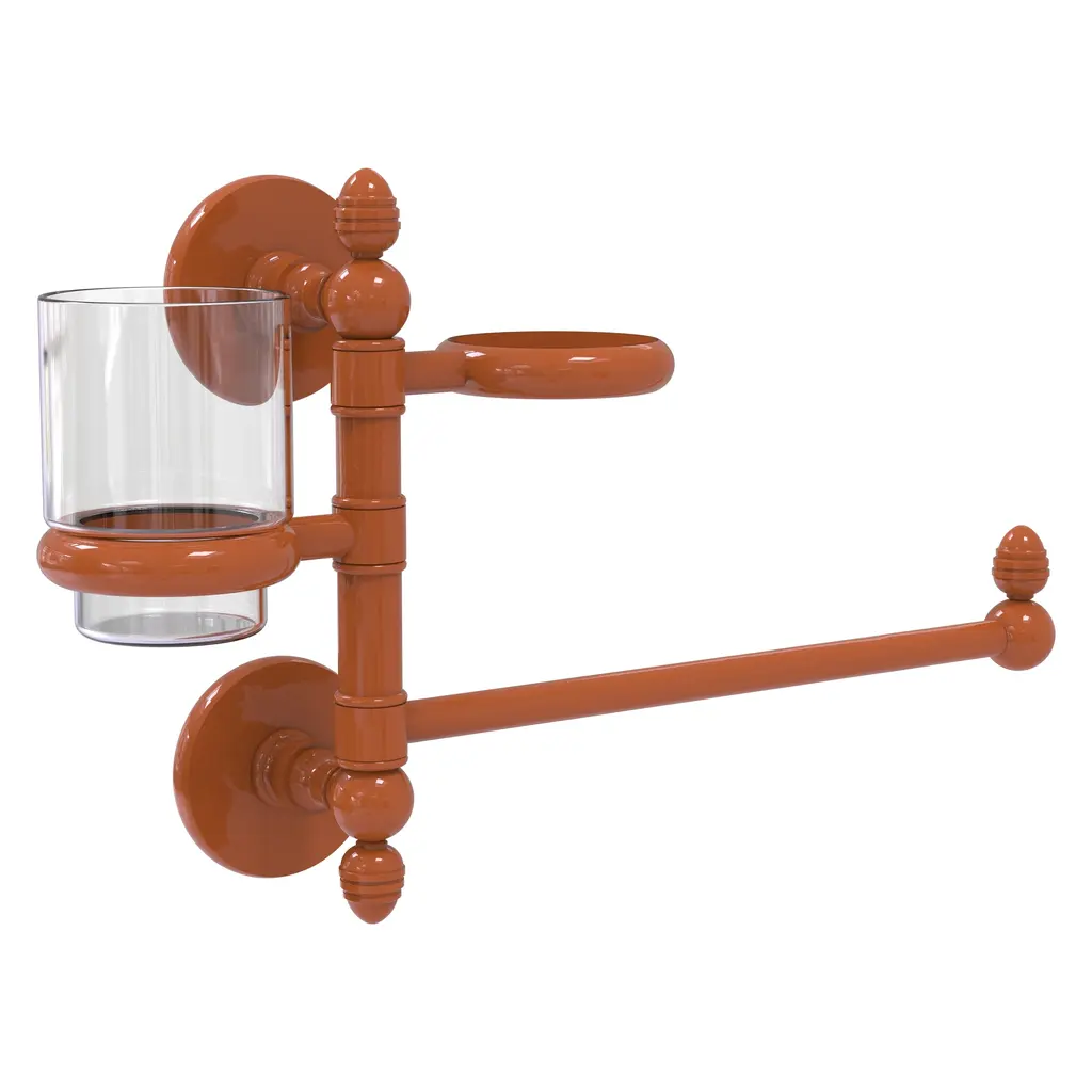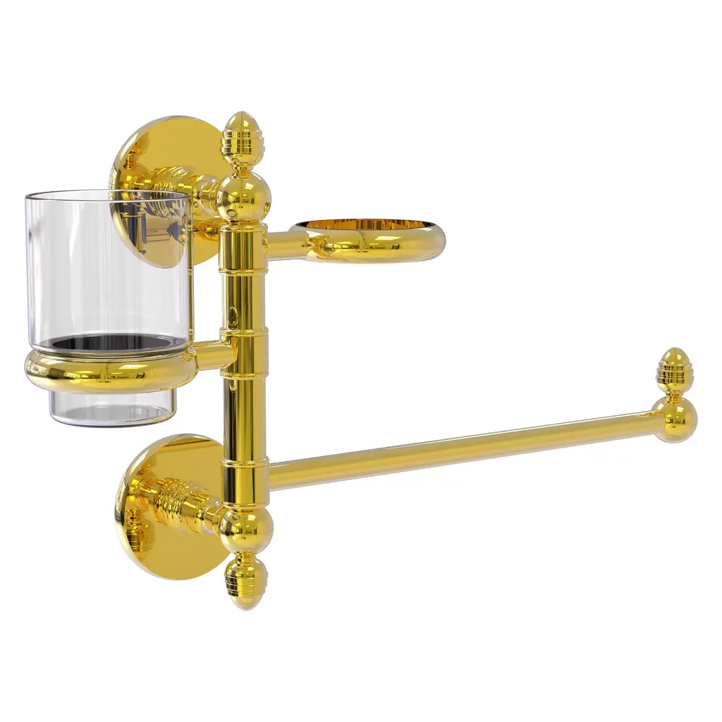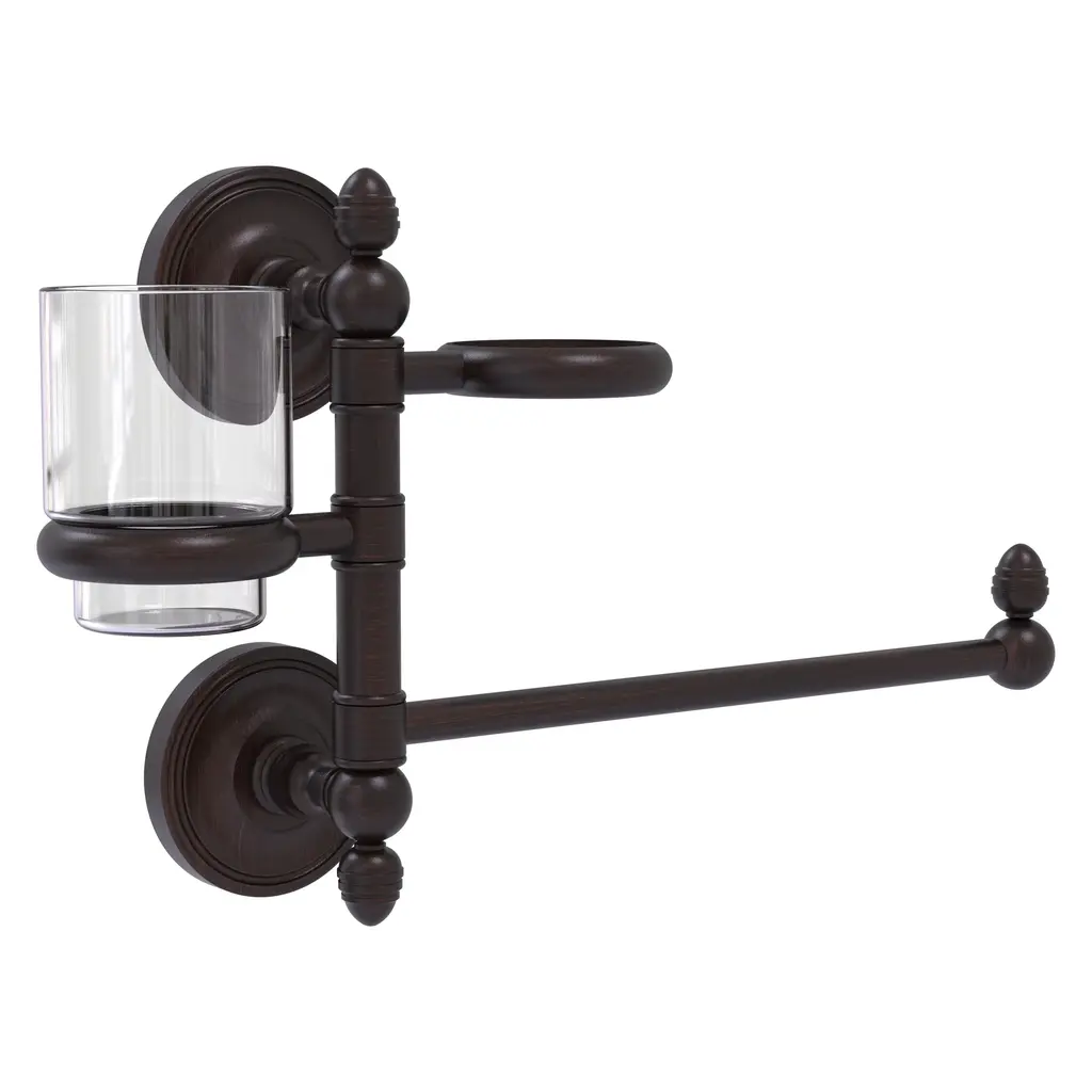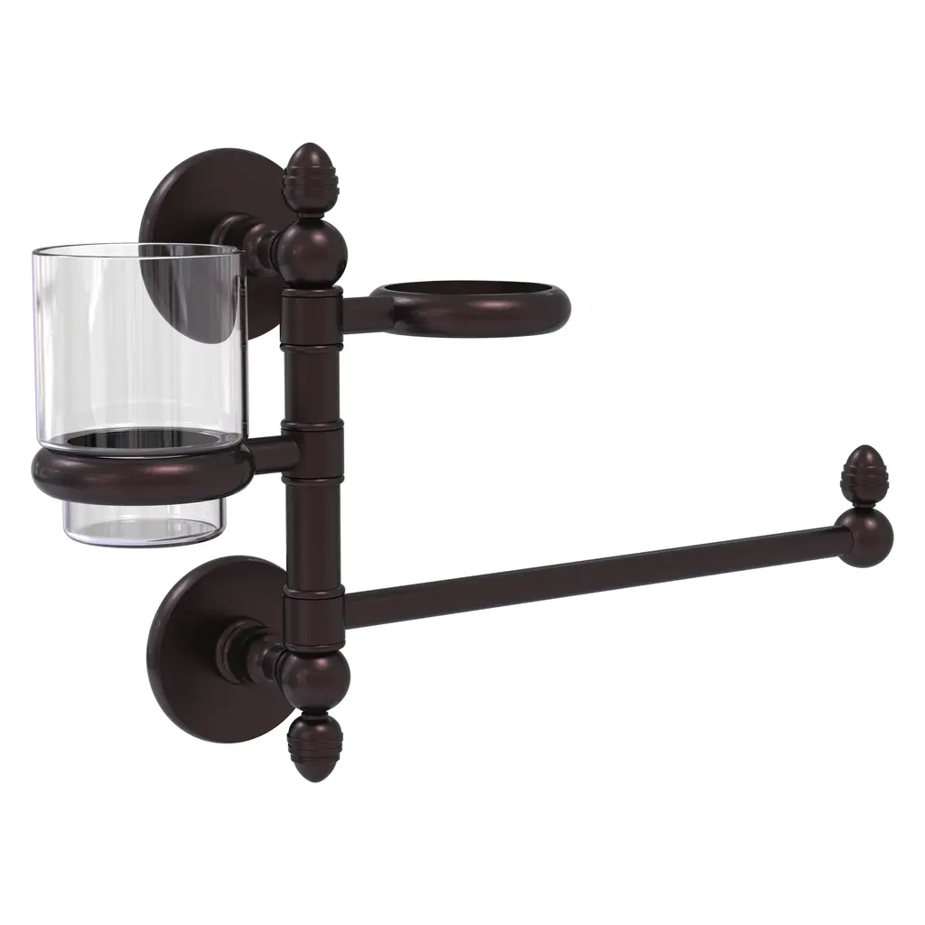 This three arm multi-use bar is the best organizational addition to your bathroom! With limited space and an clean bathroom countertop in mind, we created a 3 tier bar that is able to securely hold your important and most used items that tend to clutter the bathroom and/or vanity. Great for hair dryer, tumbler, soap dish or any combination of items that will fit in the accessory ring.Crafted from the finest solid brass materialsConcealed screw mounting hardware makes installation easyFlexible storage rail features one bar and two ringsKeeps countertops clutter free and organizedAvailable in a wide variety of lifetime designer finishesLimited Lifetime Warranty