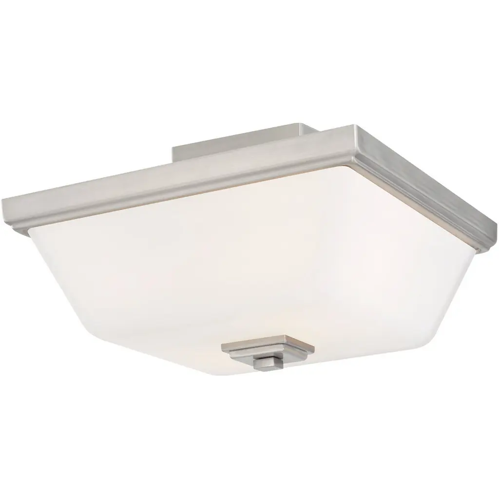 Accent any space with the simple elegance of this contemporary flush mount from the Allure collection. This light is great for hallways and bedrooms. The shade is a square hand blown satin opal white glass and the fixture is accented with a brushed nickel finish that delivers sleek simplicity to complement a wide range of spaces and decor styles. This fixture can also double as a ADA wall sconce.Glass Type/Shade Type: Hand Blown Satin Opal White GlassFinish: Brushed NickelMaterial: SteelNumber of Bulbs: 3Bulb Base Type: Medium BaseMax Wattage: 40Suitable for Dry Locations? YesSuitable for Damp Locations? YesSuitable for Wet Locations? NoADA Compliant? Yes
