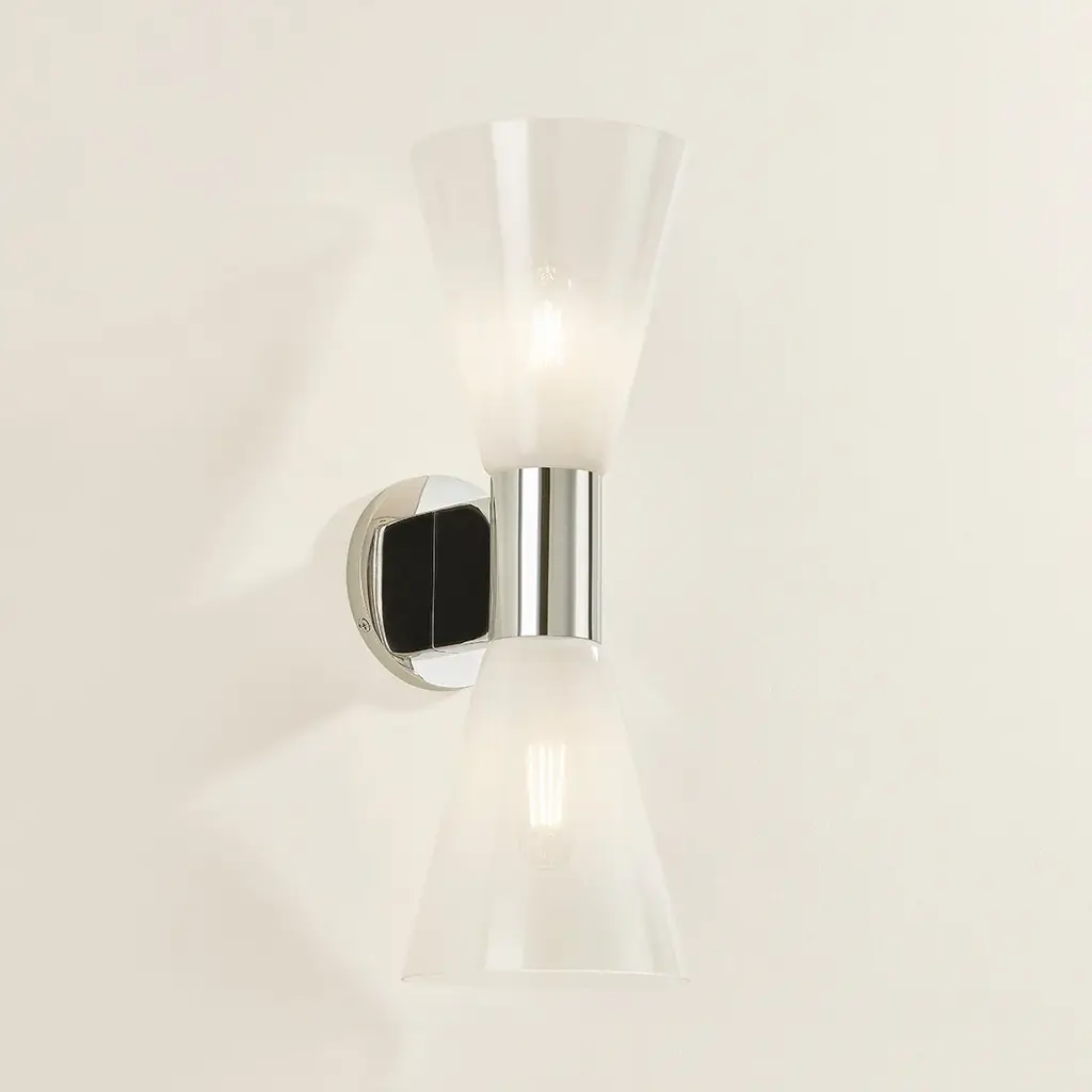 Elevating basic geometric shapes, the Alma sconce balances delicate Sfumato glass with sleek metalwork. The hand-blown glass shades subtly reveal the light source within, creating a soft emission of light. Available in a 1 or 2-light sconce, Alma is refreshing in its simplicity.