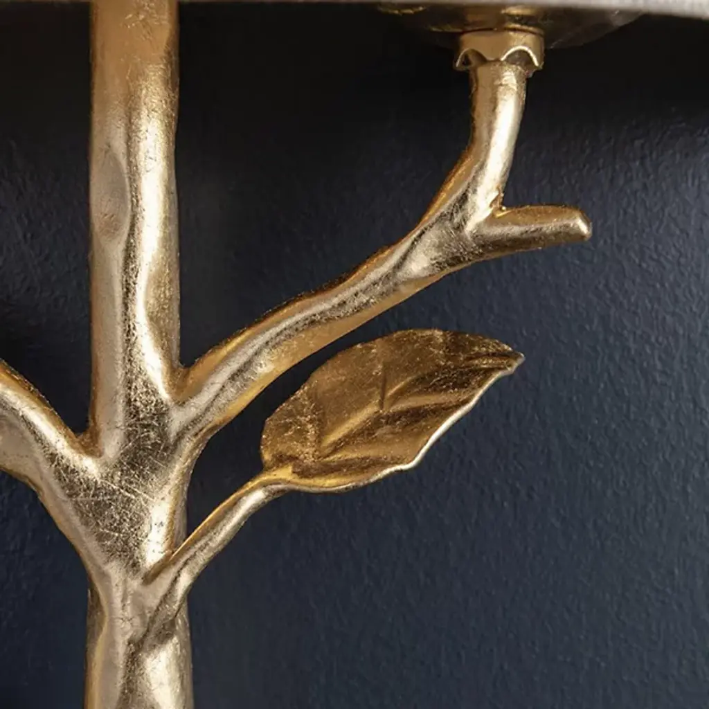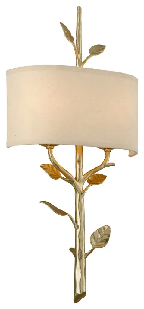 Nature’s beauty ensconced for your wall. Vivid detail makes the Troy Lighting Almont Wall Sconce a sight to behold, as balanced lighting plays second fiddle to the fixture’s glorious design. The Hand-Worked Iron frame is sculpted into a beautiful branch, with detailed leaves growing up toward the light source. The structure attaches to the wall behind the Fabric shade, hiding the connecting point to maintain the fixture’s enchanting allure. The bulbs shine through and around the shade, with light splashing freely off the wall while also gaining a soft texture as it filters through the Fabric. The warm glow highlights the beauty of sconce’s natural crafting, making this a piece everyone will want to stare at.