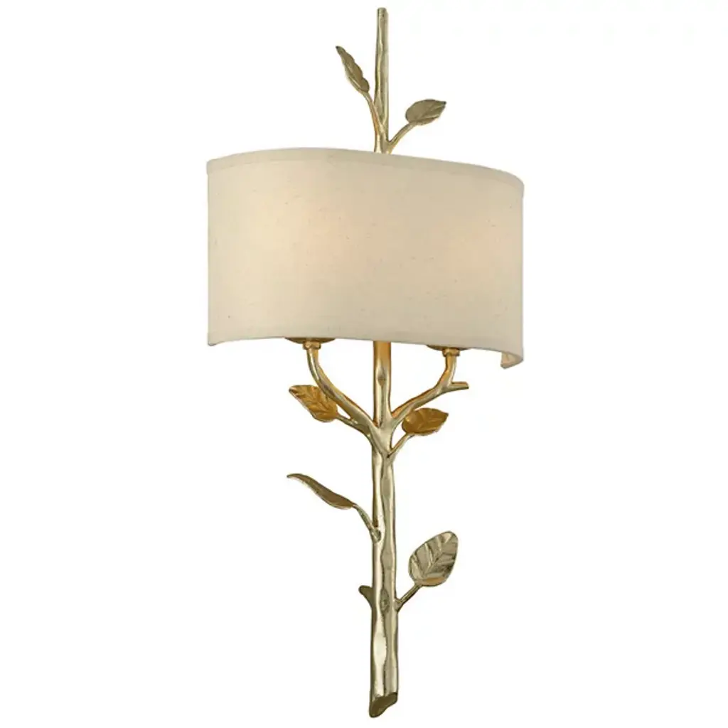 Nature’s beauty ensconced for your wall. Vivid detail makes the Troy Lighting Almont Wall Sconce a sight to behold, as balanced lighting plays second fiddle to the fixture’s glorious design. The Hand-Worked Iron frame is sculpted into a beautiful branch, with detailed leaves growing up toward the light source. The structure attaches to the wall behind the Fabric shade, hiding the connecting point to maintain the fixture’s enchanting allure. The bulbs shine through and around the shade, with light splashing freely off the wall while also gaining a soft texture as it filters through the Fabric. The warm glow highlights the beauty of sconce’s natural crafting, making this a piece everyone will want to stare at.