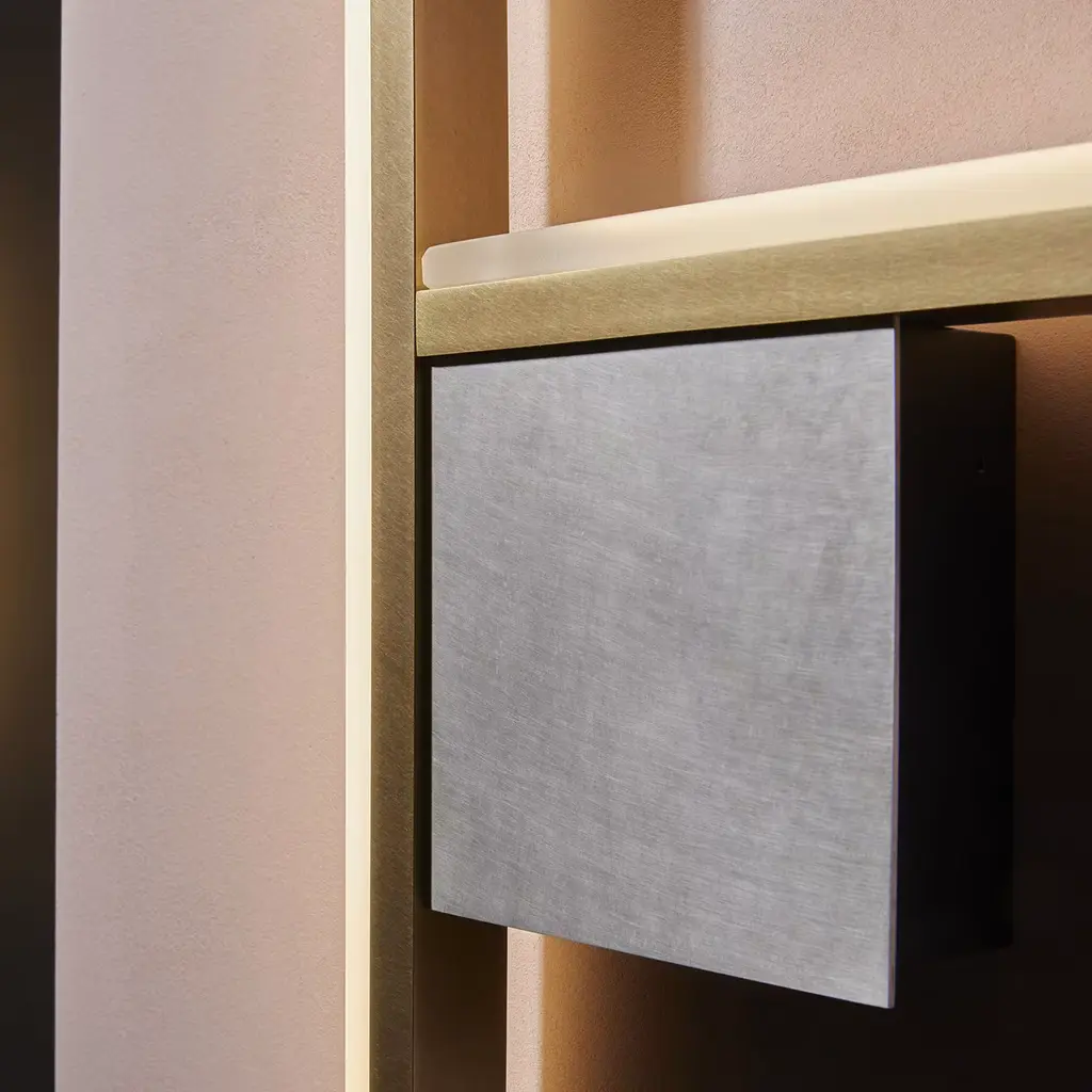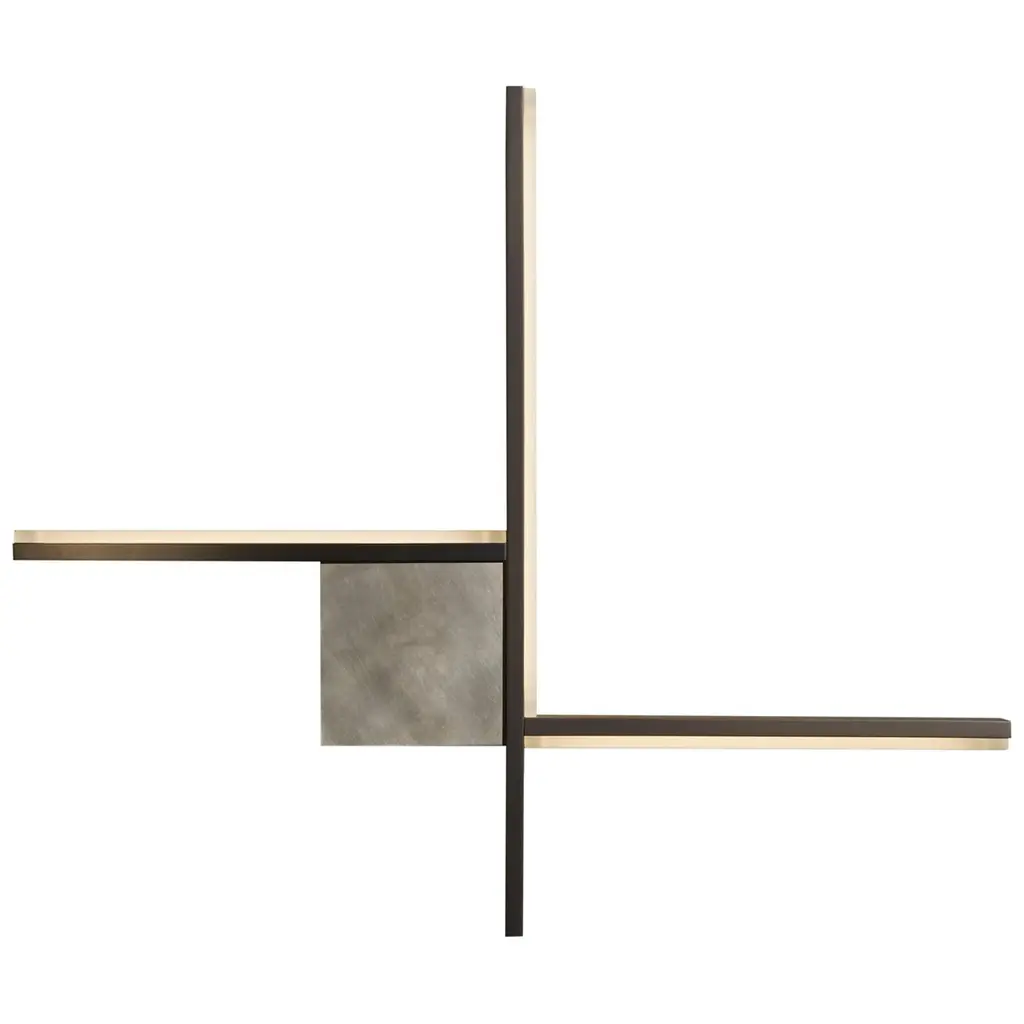 This superb wall lamp will enliven a foyer, living room in a modern home with elegance and simplicity. The minimal and sophisticated design features a structure made of delabré brass partially enclosing a pewter plate. The LED strip supports max 13W, 24V with 1330lm, 2700°K and CRI80. This wall lamp is also available in delabrè copper or matte black nickel, with an antique copper or matte black nickel plate. Mirrored version available. Please contact the Concierge for information. Contract and commercial certifications available upon request.