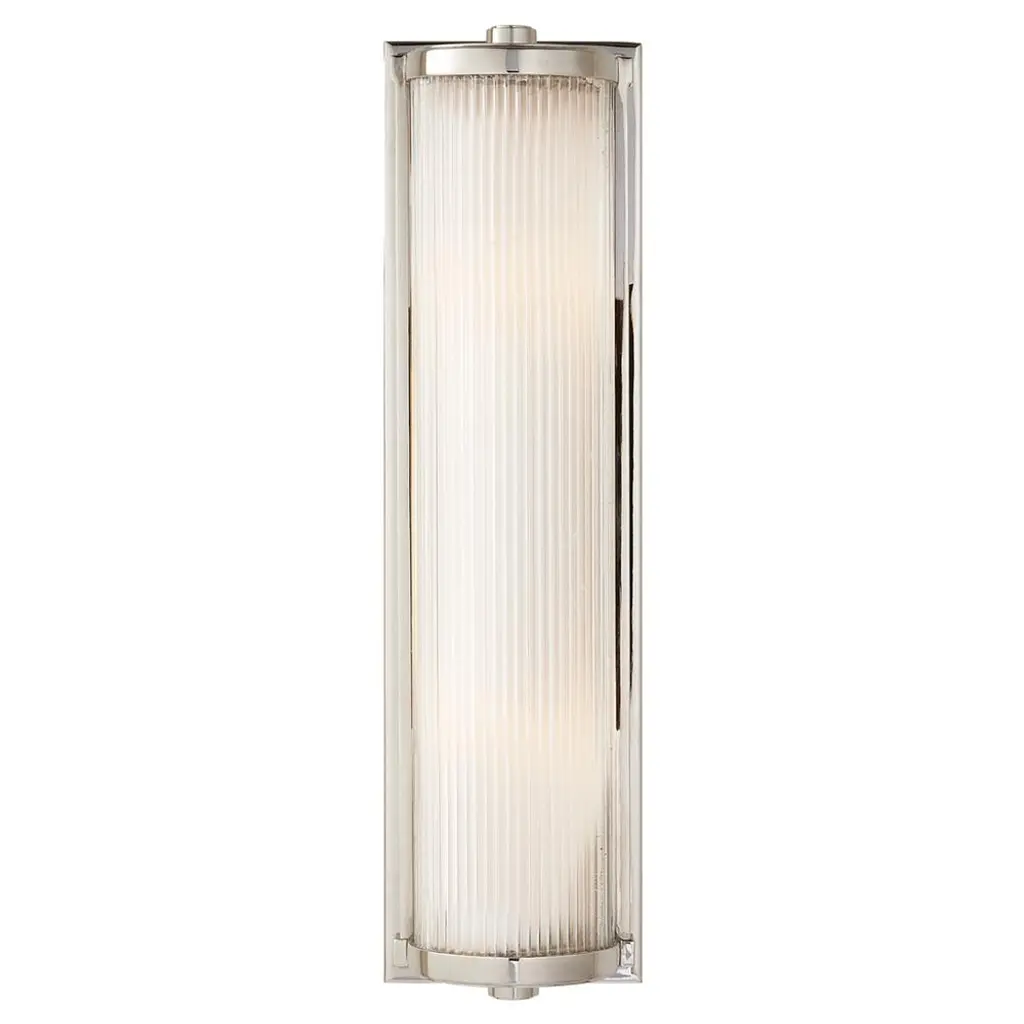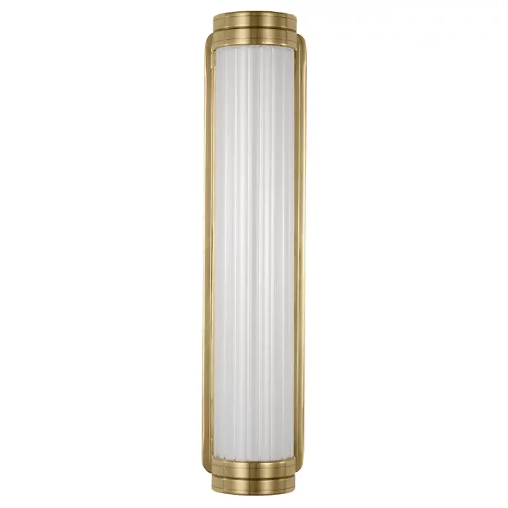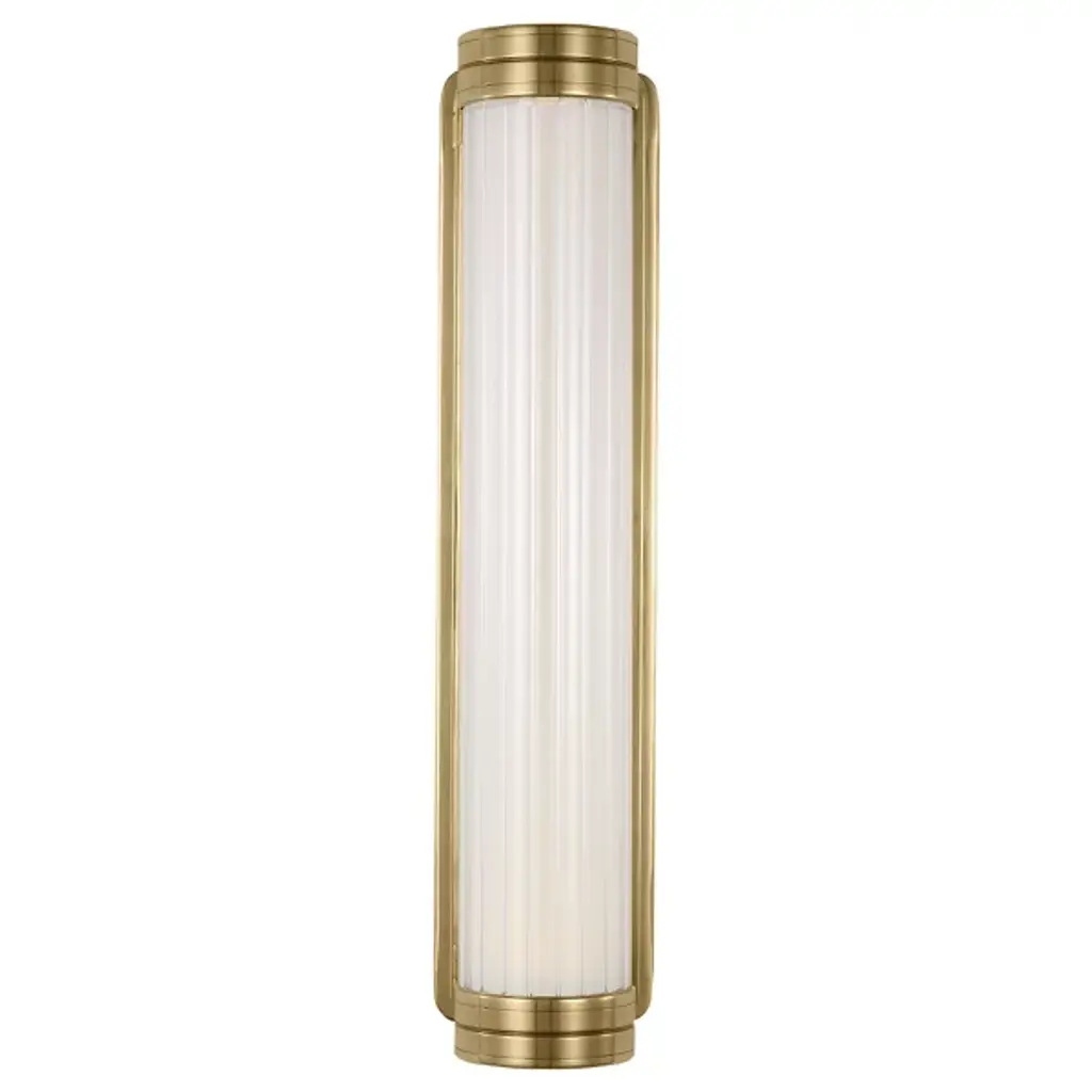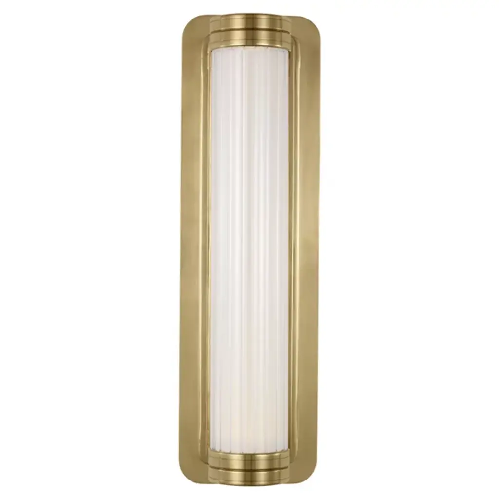 The Alo LED Wall Sconce from Visual Comfort Modern offers a refined, retro presence and soft illumination to indoor walls. Designed by Avroko, this fixture pairs a fluted glass cylinder with a clean-surfaced brass frame, casting a warm, ambient glow while. Each fixture is damp-listed and thoughtfully built, with fluted detailing on the diffuser adding intrigue. The simple structure becomes a refined accent for all manner of hallways, bathrooms, or bedside settings, making a lasting impression without dominating its surroundings.