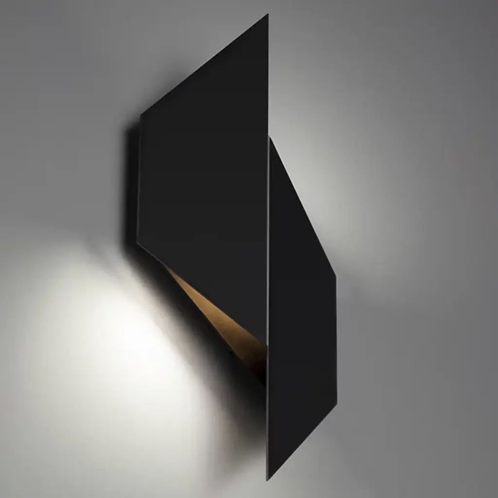 Add memorable ambiance and intricate presence to exterior spaces with the arresting, geometrically slanted style of the Alternate LED Outdoor Wall Sconce from dweLED. A stark and enticing fixture, it sets wet-rated, ADA-compliant LED lamping inside an angular shade structure of matte-textured aluminum that places polygonal shapes at opposing angles, channeling a vibrant, reflected wall wash to the sides.