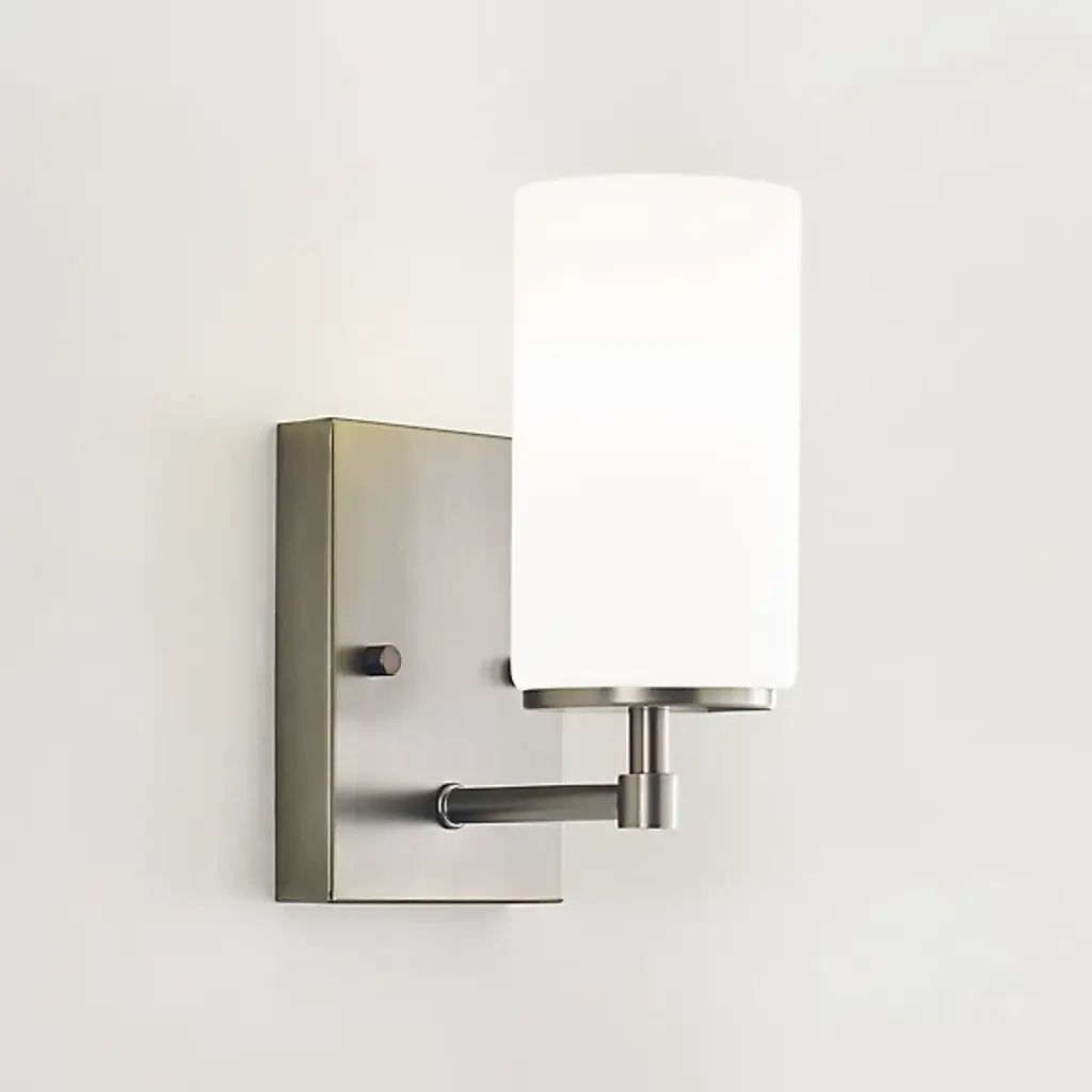 The Alturas Wall Sconce by Generation Lighting, formerly known as Generation Lighting, formerly known as Sea Gull Lighting,, brings that clean, contemporary look to your living space. Its sleek silhouette features a cylindrical Satin Etched glass shade that is supported by a low-profile, Brushed Nickel holder (with a similarly finished stem and wallplate). Once lit, a warm glow permeates the shade and reflects off the surrounding metal for a pleasant, yet functional ambiance.