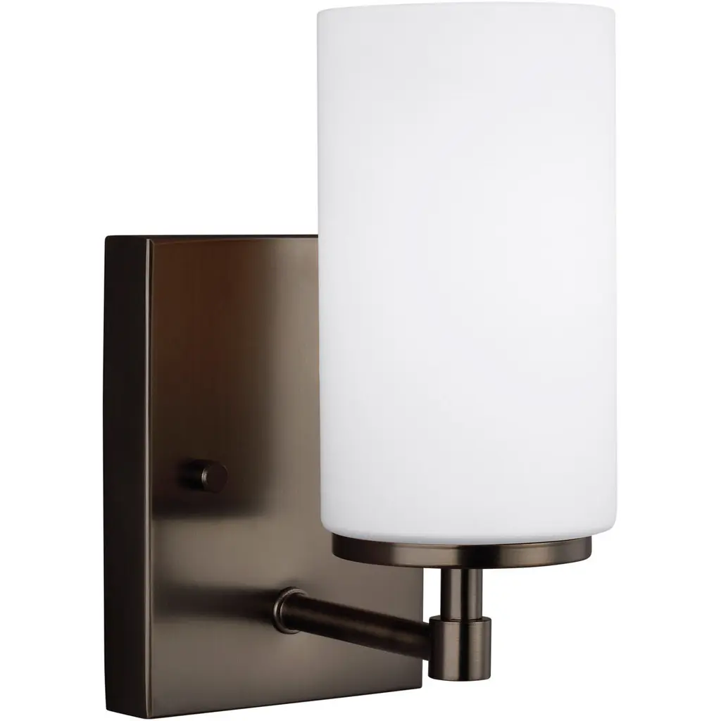 The Alturas one light wall sconce in Midnight Black provides abundant light for your bath vanity, while adding a layer of today's style to your interior design. The silhouette of the modern Alturas lighting collection by features an interlocking, spherical steel frame, which harkens back to the Unisphere constructed for the 1964 New York World's Fair. The minimalist Alturas Collection draws the eye to the soft, warm glow of the light emitted from the cylindrical Satin Etched glass shades. The full assortment includes three-, five- and nine-light chandeliers, a one-light mini pendant, a three-light pendant, a two-light semi flush which is convertible into a pendant, and one-, two-, three- and four-light bath fixtures. All fixtures are offered in Brushed Oil Rubbed Bronze, Brushed Nickel, Midnight Black and Satin Brass finishes, the bath fixtures are also offered in Chrome finish. Incandescent and ENERGY STAR-qualified LED lamping are available; all fixtures are California Title 24 compliant.
