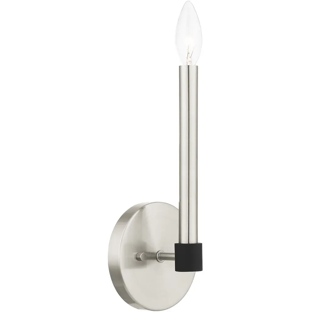 The Alvaro wall sconce features a simple silhouette and unique tapered accent. The bobeche flares out into the candlestick for a soft modern look. Minimalistic yet interesting, Alvaro is the perfect accent.
