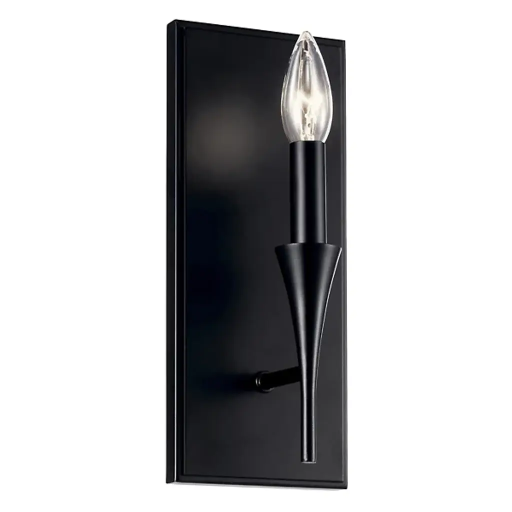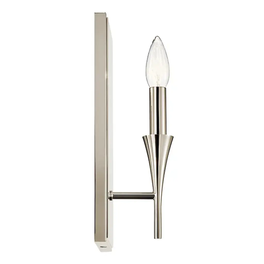 Unveil elegance with the Alvaro Wall Sconce from Kichler, boasting a chic silhouette and distinctive tapered accent. Crafted with precision, Alvaro's angles begin at the canopy, gracefully extending to the central root before blooming outward and upward, emitting a radiant glow. Enhanced with bobeche, softly flaring into a candlestick, this fixture epitomizes modern sophistication. Illuminate your space with Alvaro's refined design, infusing understated elegance into any environment.