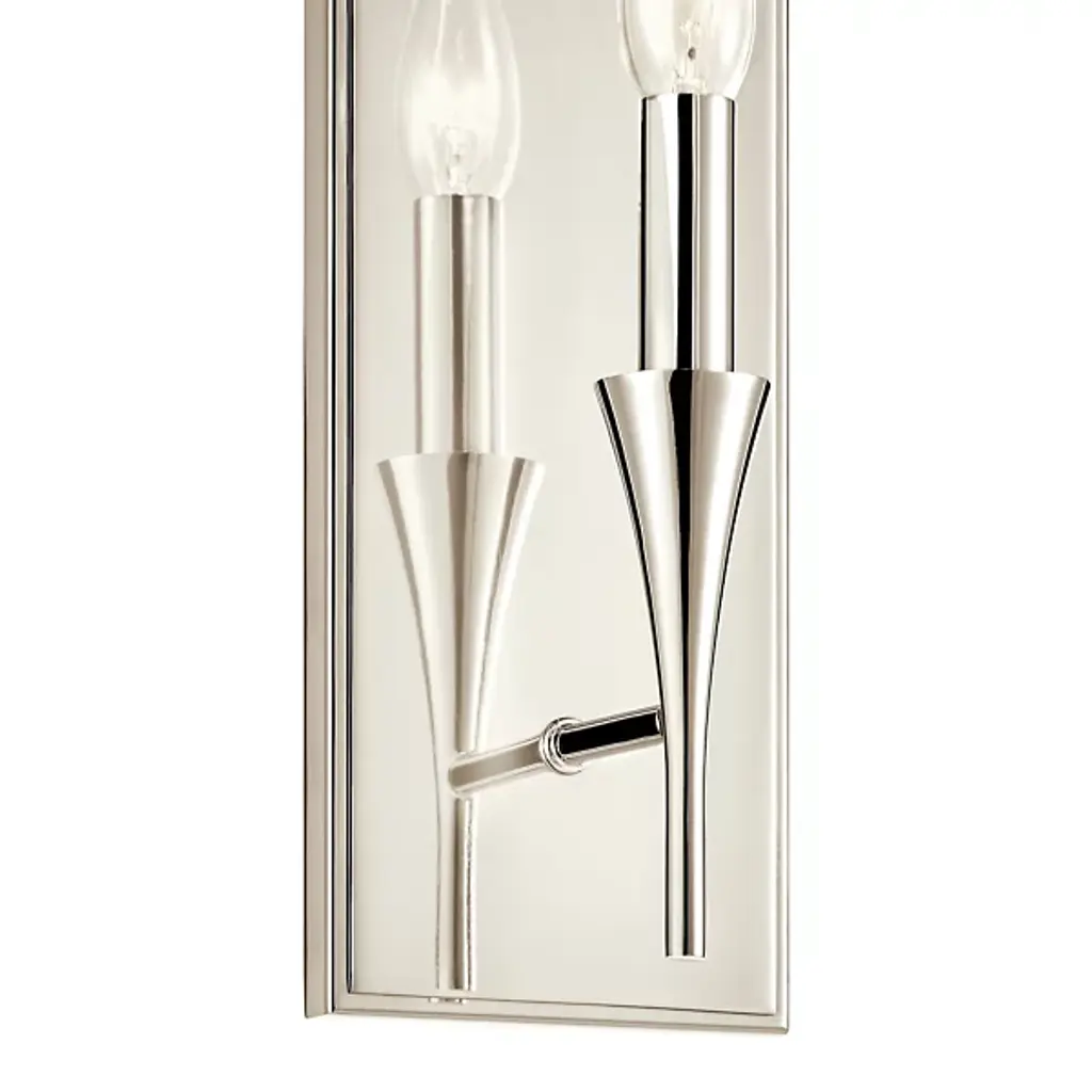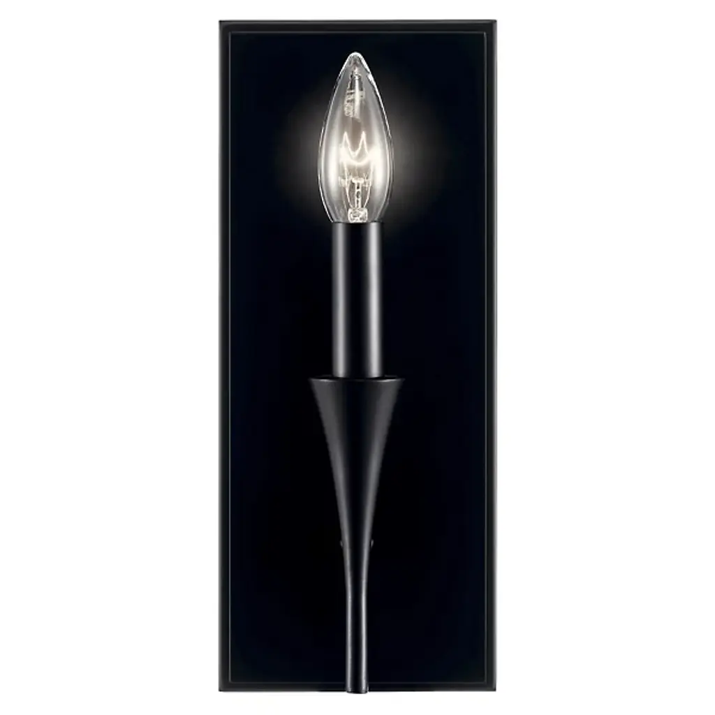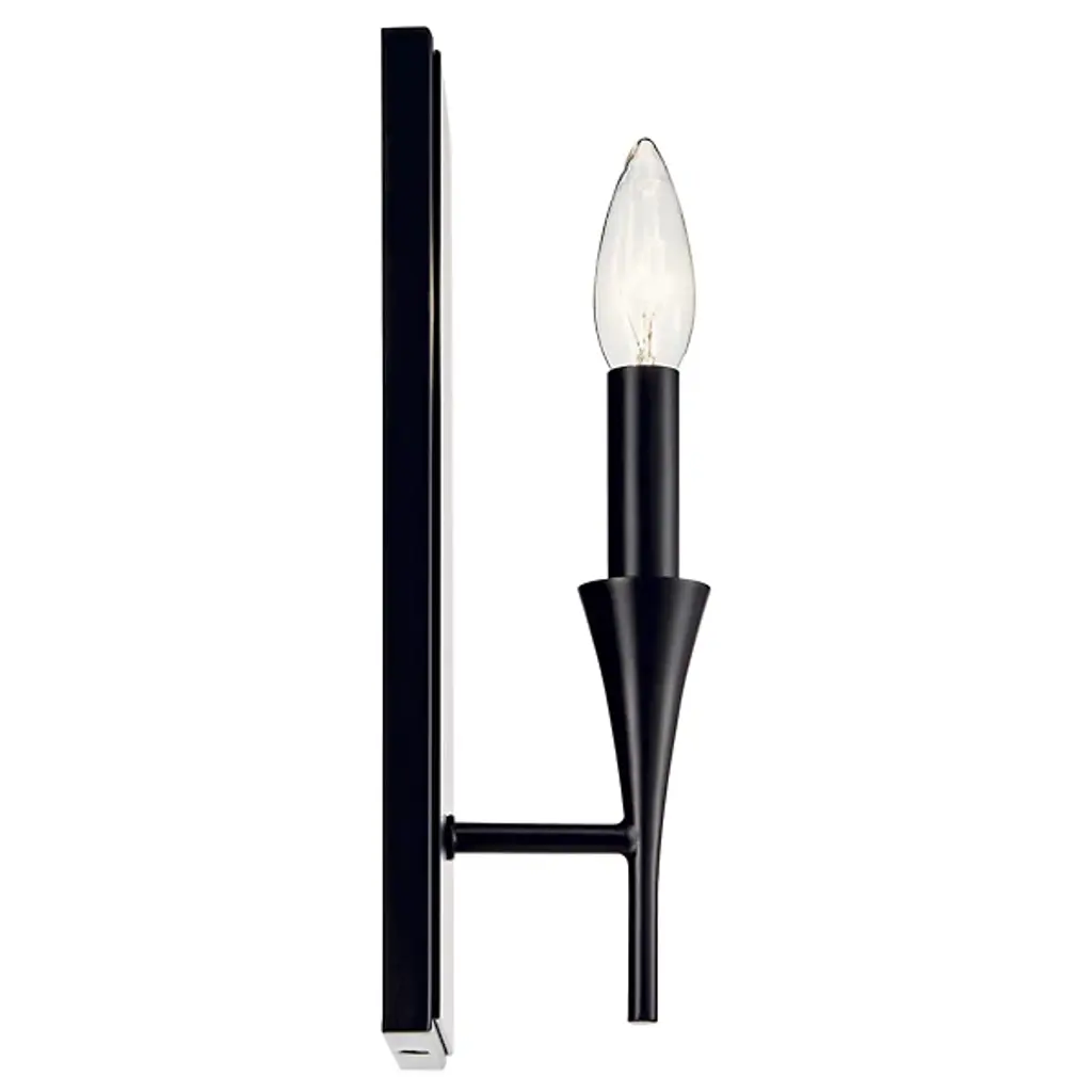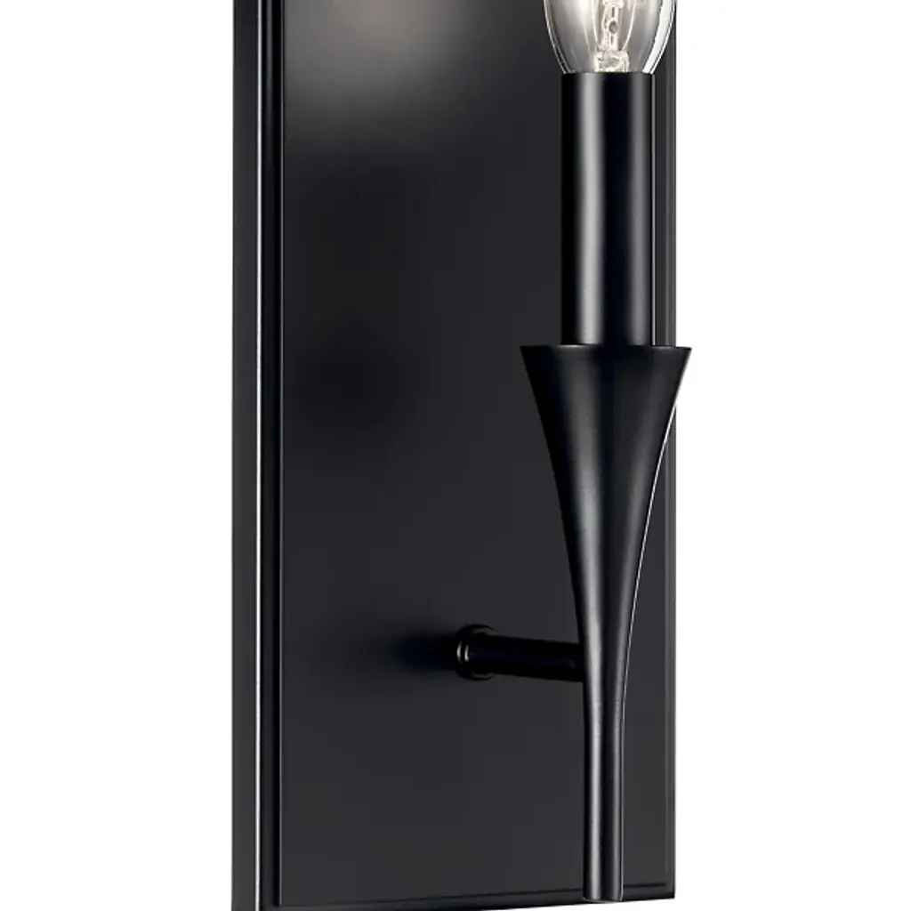 Unveil elegance with the Alvaro Wall Sconce from Kichler, boasting a chic silhouette and distinctive tapered accent. Crafted with precision, Alvaro's angles begin at the canopy, gracefully extending to the central root before blooming outward and upward, emitting a radiant glow. Enhanced with bobeche, softly flaring into a candlestick, this fixture epitomizes modern sophistication. Illuminate your space with Alvaro's refined design, infusing understated elegance into any environment.