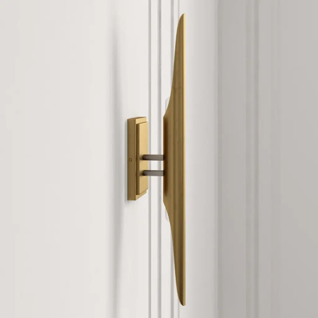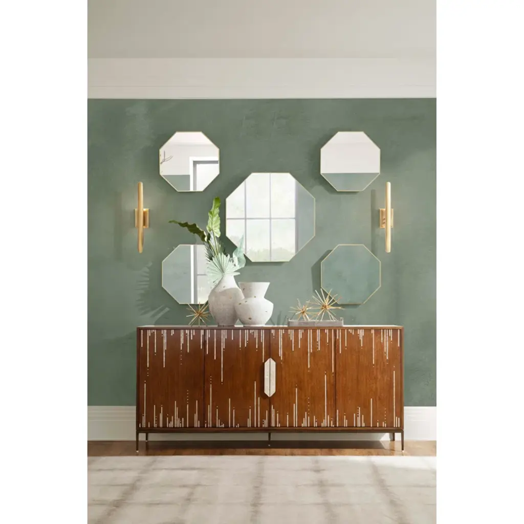 Cool, connective, sculptural. Interlocking panels render a thought-provoking aesthetic. Subtle ambient illumination commands attention to this floating work of art.