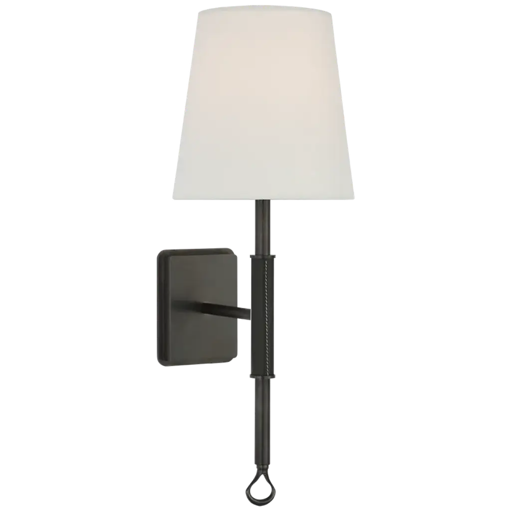 Amber Lewis For Visual Comfort Signature Griffin Sconce In Bronze And Chocolate Leather With Linen Shade