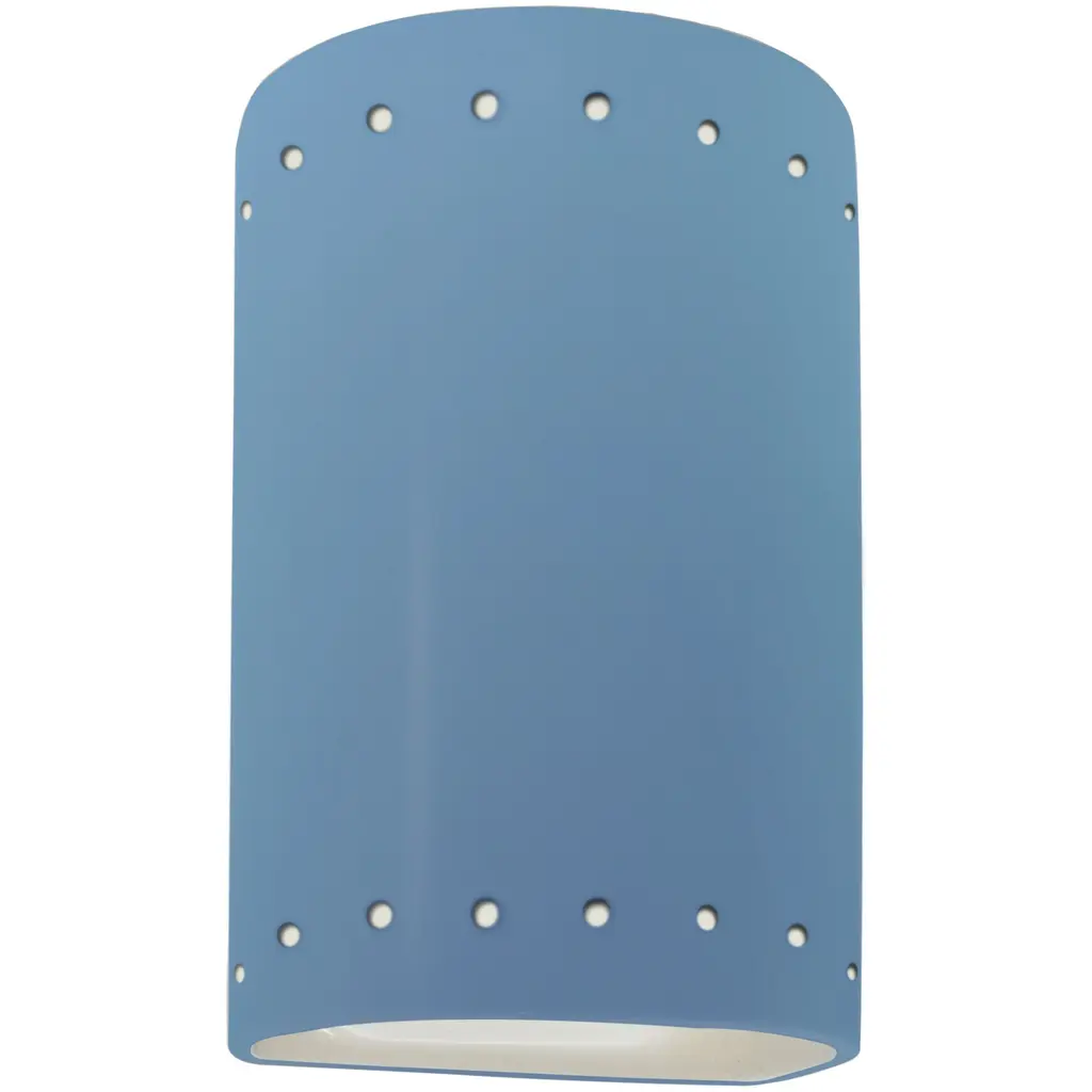 Get the most out of the exterior of your home with the Justice Design Ambiance ADA Cylinder Perforated Outdoor LED Wall Sconce - Open Top & Bottom. This dynamic exterior wall light is built with a strong and stylish ceramic body, perfect for holding up to the elements with year-round outdoor use. Thanks to the open design on the top of bottom, ample light escapes to brighten up your space. Create a dynamic and stunning front porch or back patio space with this modern wall light.