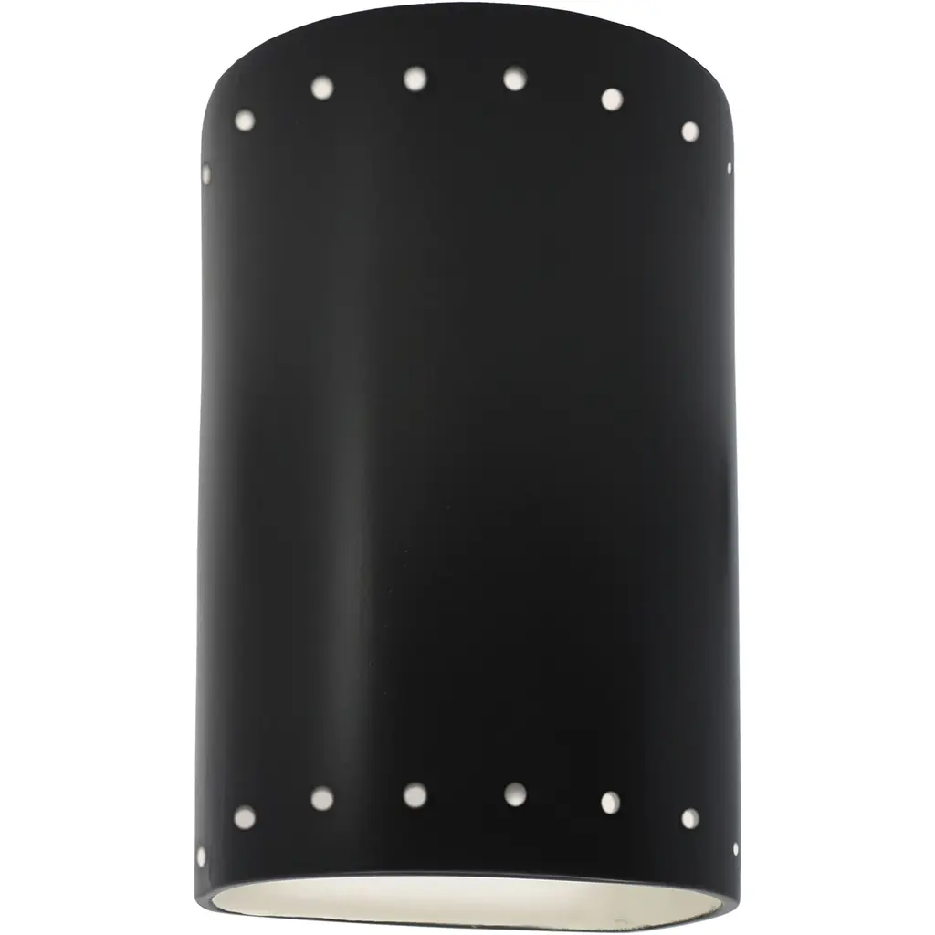 Get the most out of the exterior of your home with the Justice Design Ambiance ADA Cylinder Perforated Outdoor LED Wall Sconce - Open Top & Bottom. This dynamic exterior wall light is built with a strong and stylish ceramic body, perfect for holding up to the elements with year-round outdoor use. Thanks to the open design on the top of bottom, ample light escapes to brighten up your space. Create a dynamic and stunning front porch or back patio space with this modern wall light.