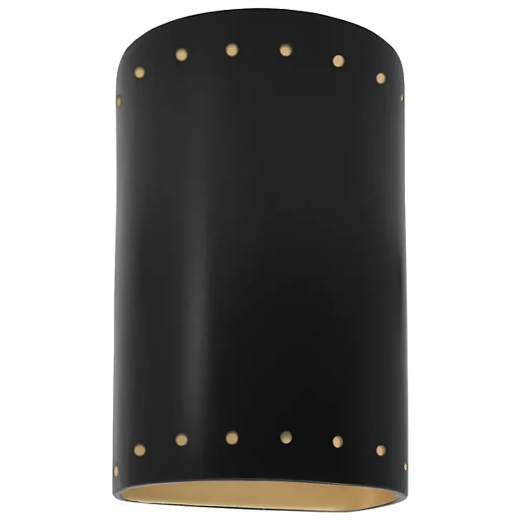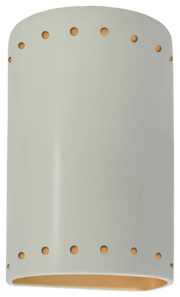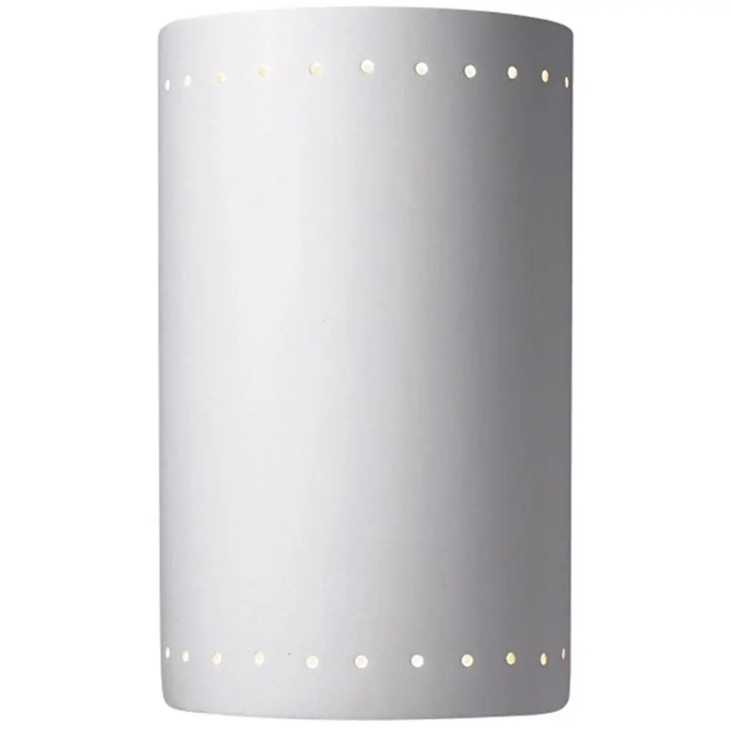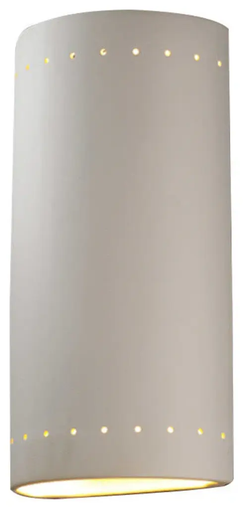 Get the most out of the exterior of your home with the Justice Design Ambiance ADA Cylinder Perforated Outdoor LED Wall Sconce - Open Top & Bottom. This dynamic exterior wall light is built with a strong and stylish ceramic body, perfect for holding up to the elements with year-round outdoor use. Thanks to the open design on the top of bottom, ample light escapes to brighten up your space. Create a dynamic and stunning front porch or back patio space with this modern wall light.