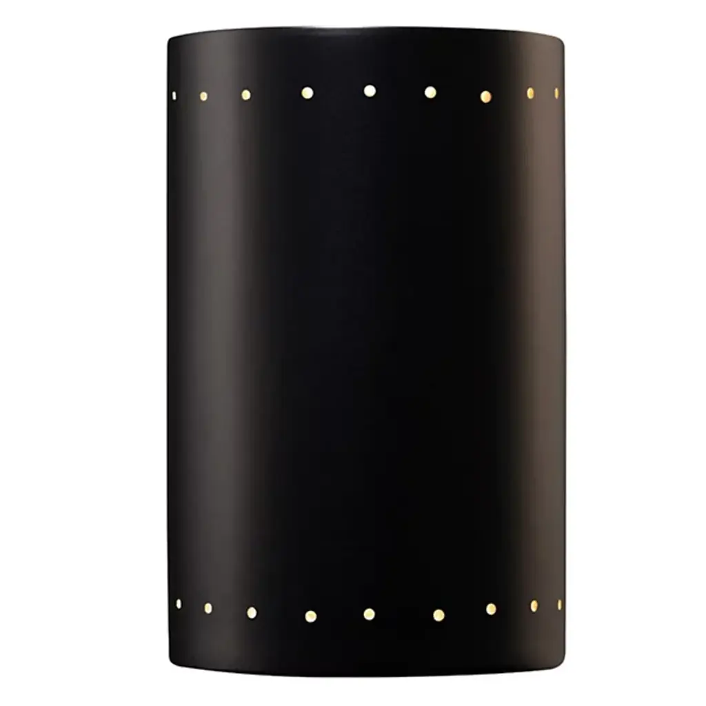 Get the most out of the exterior of your home with the Justice Design Ambiance ADA Cylinder Perforated Outdoor LED Wall Sconce - Open Top & Bottom. This dynamic exterior wall light is built with a strong and stylish ceramic body, perfect for holding up to the elements with year-round outdoor use. Thanks to the open design on the top of bottom, ample light escapes to brighten up your space. Create a dynamic and stunning front porch or back patio space with this modern wall light.