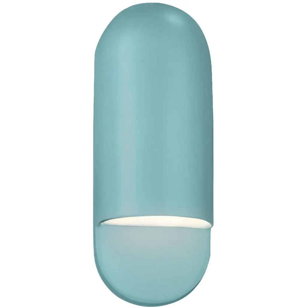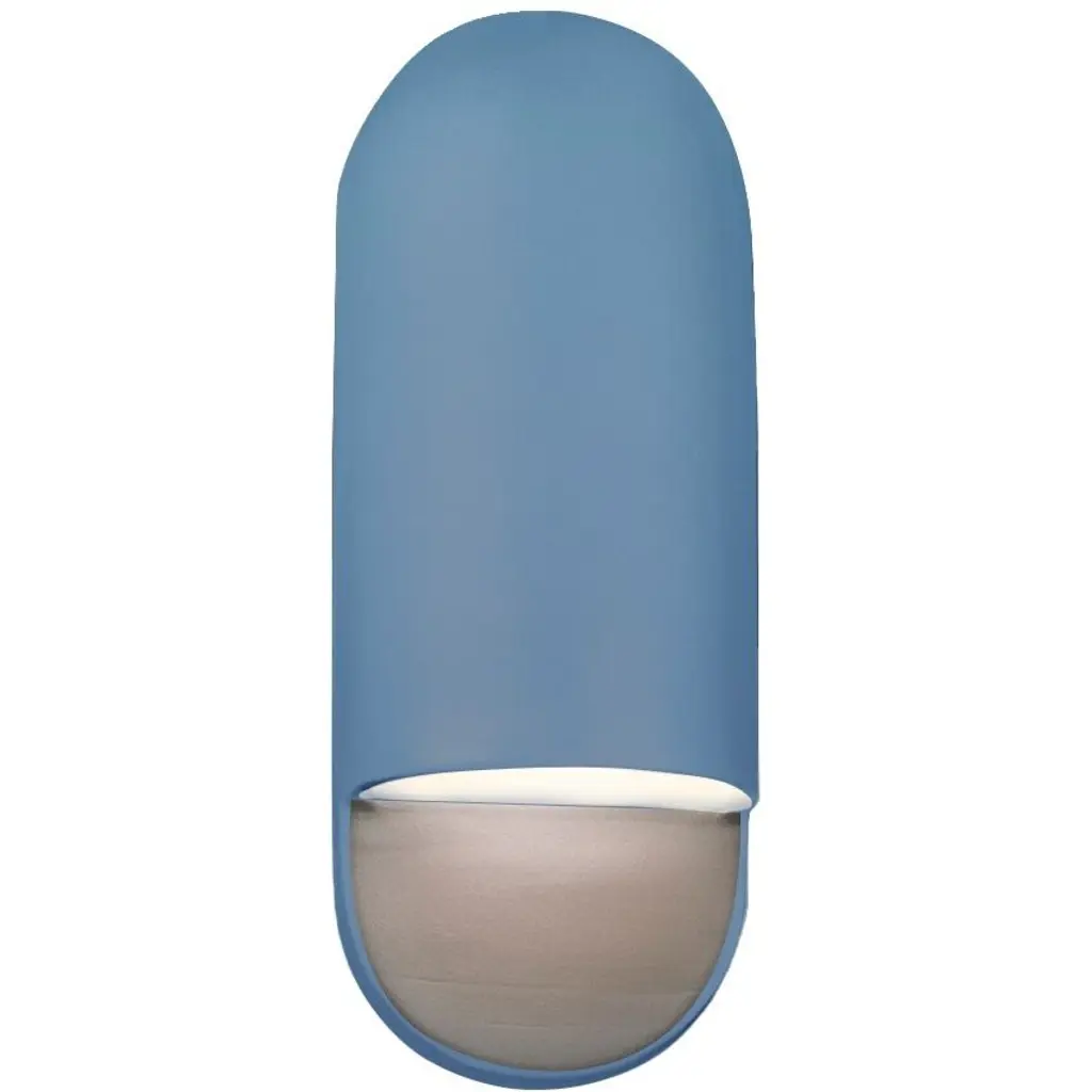 Contemporary in form yet traditional in technique. Expertly crafted from Ceramic, Justice Design Group's Ambiance Capsule ADA Wall Sconce features a striking oblong form. Artisans apply multiple layers of paint and special finishing techniques then texturize by hand to replicate the look of rich materials. Perfect for living areas or bedrooms, the dimmable light casts a warm glow while infusing a space with an understated, modern sensibility. Each piece is individually crafted in the United States, creating a one-of-kind design with unique variations.