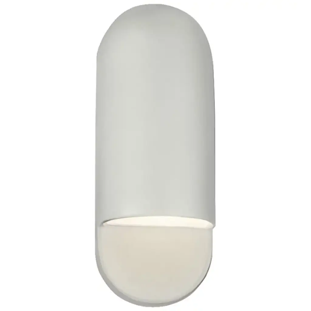 Contemporary in form yet traditional in technique. Expertly crafted from Ceramic, Justice Design Group's Ambiance Capsule ADA Wall Sconce features a striking oblong form. Artisans apply multiple layers of paint and special finishing techniques then texturize by hand to replicate the look of rich materials. Perfect for living areas or bedrooms, the dimmable light casts a warm glow while infusing a space with an understated, modern sensibility. Each piece is individually crafted in the United States, creating a one-of-kind design with unique variations.