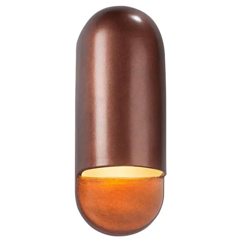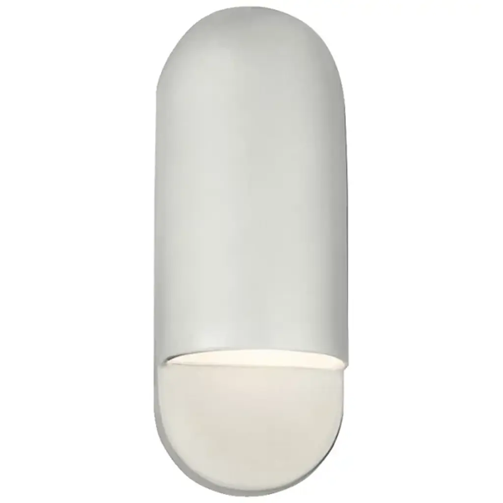 Contemporary in form yet traditional in technique. Expertly crafted from Ceramic, Justice Design Group's Ambiance Capsule ADA Wall Sconce features a striking oblong form. Artisans apply multiple layers of paint and special finishing techniques then texturize by hand to replicate the look of rich materials. Perfect for living areas or bedrooms, the dimmable light casts a warm glow while infusing a space with an understated, modern sensibility. Each piece is individually crafted in the United States, creating a one-of-kind design with unique variations.