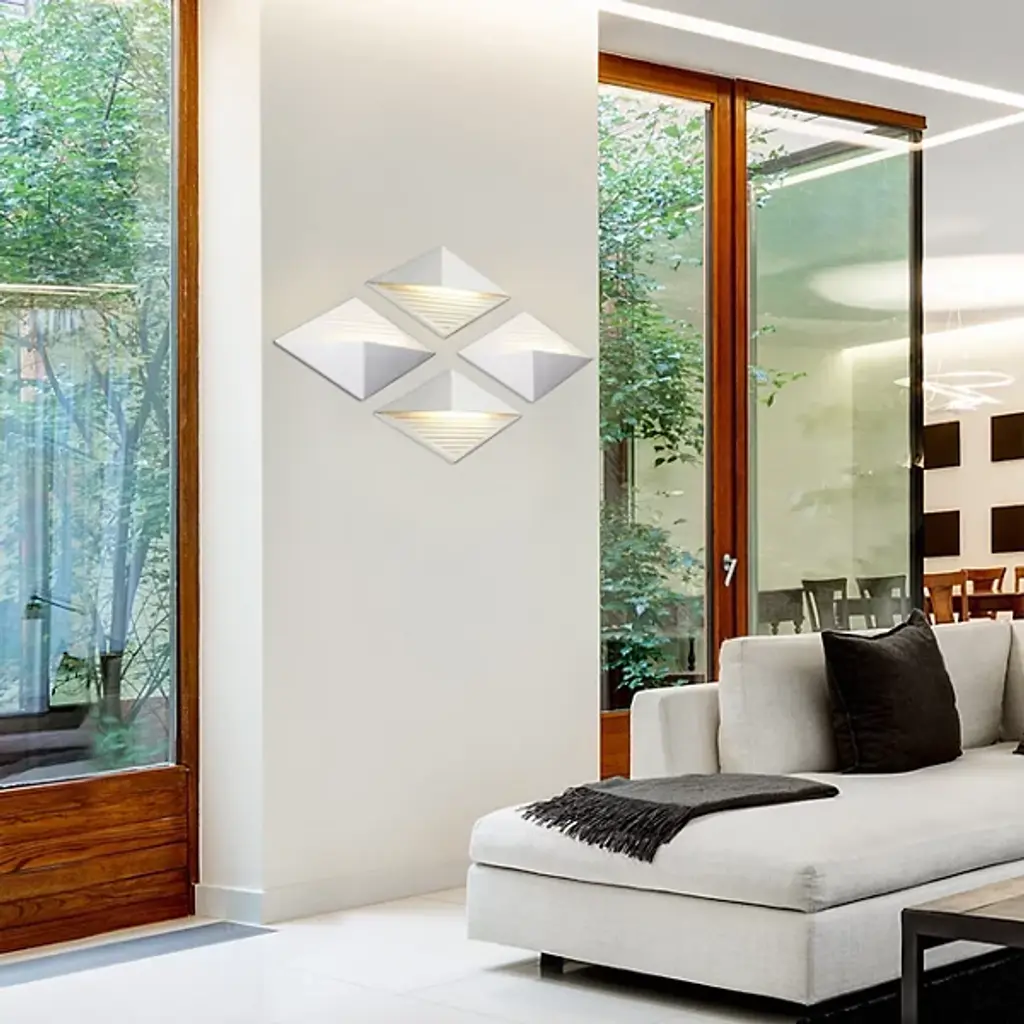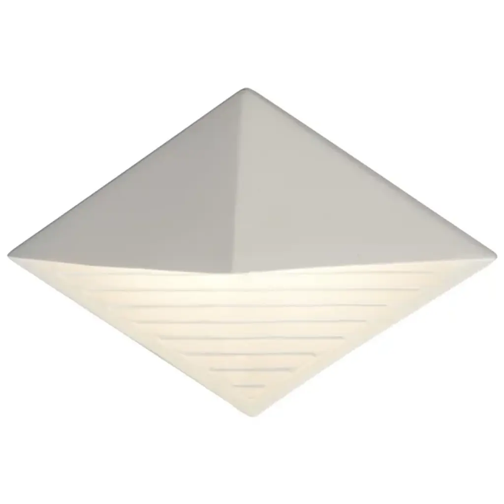 Create a striking contemporary look anywhere you need it. The Justice Design Group Ambiance Diamond LED Wall Sconce is designed with the architecture of the modern home in mind. This compact fixture uses a triangular form and stepped pattern to introduce line and texture into a space without undermining a minimalist aesthetic. This fixture is damp rated for indoor use when positioned upward, creating a unique uplight effect that’s ideal for tub spaces and vanity desks. When mounted downward, it can be placed both indoors and out, along patios and on porches. Few lights are as stylish and versatile as this one.