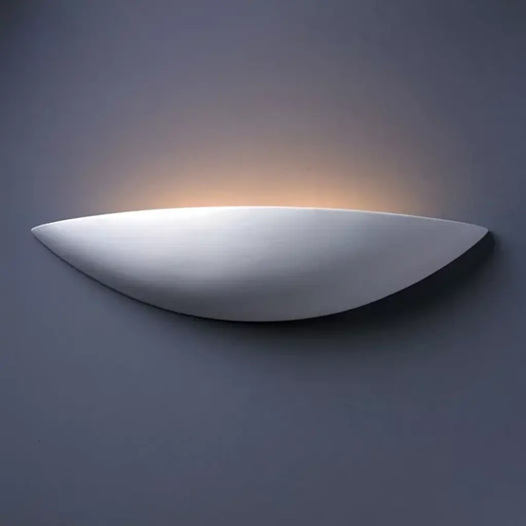 A sharp and smooth sliver of a wall light. The Ambiance Large Wall Sconce by Justice Design Group is a wide, half-bowl design made of ceramic. The light source housed within stays out of sight while the light that’s produced shines brightly across the wall. This sizable wall sconce can be installed facing up or down to create just the lighting effect needed along a hallway, around a large dining room, etc.