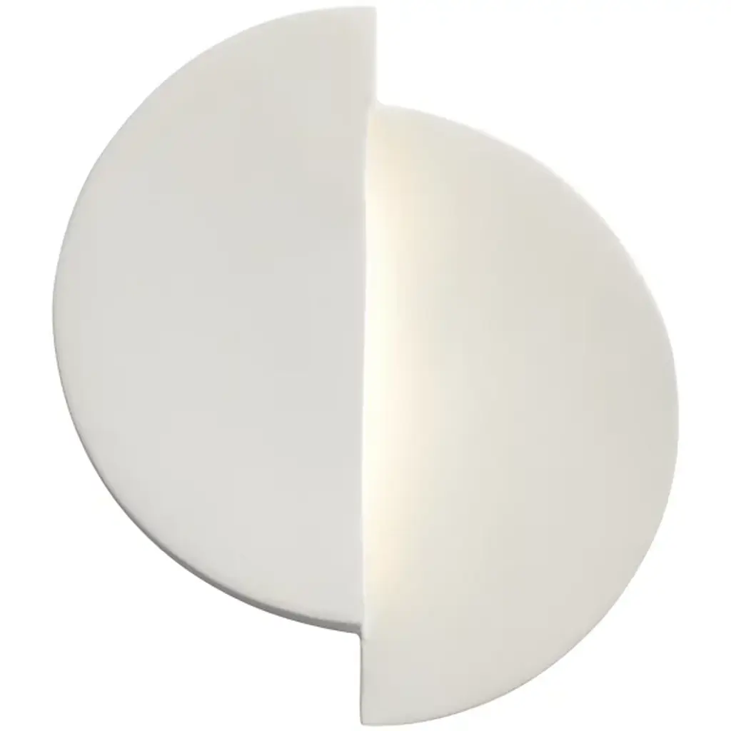 A contemporary sconce with personality and a definitive architectural quality. The Ambiance Offset Circle LED Wall Sconce by Justice Design Group is defined by its simple profile, which is positioned to create a perfectly modern look along any wall. A handsome addition to bedsides and bath areas, each is handcrafted in the USA from durable Ceramic using two semi-circles to create a dynamic piece that breaks up a wall and creates atmosphere wherever it’s needed most. This wall sconce stands out from the crowd for its easy going on-trend profile, which mounts closely to a wall to accentuate the best features of a room without overpowering minimalist-inspired decor.