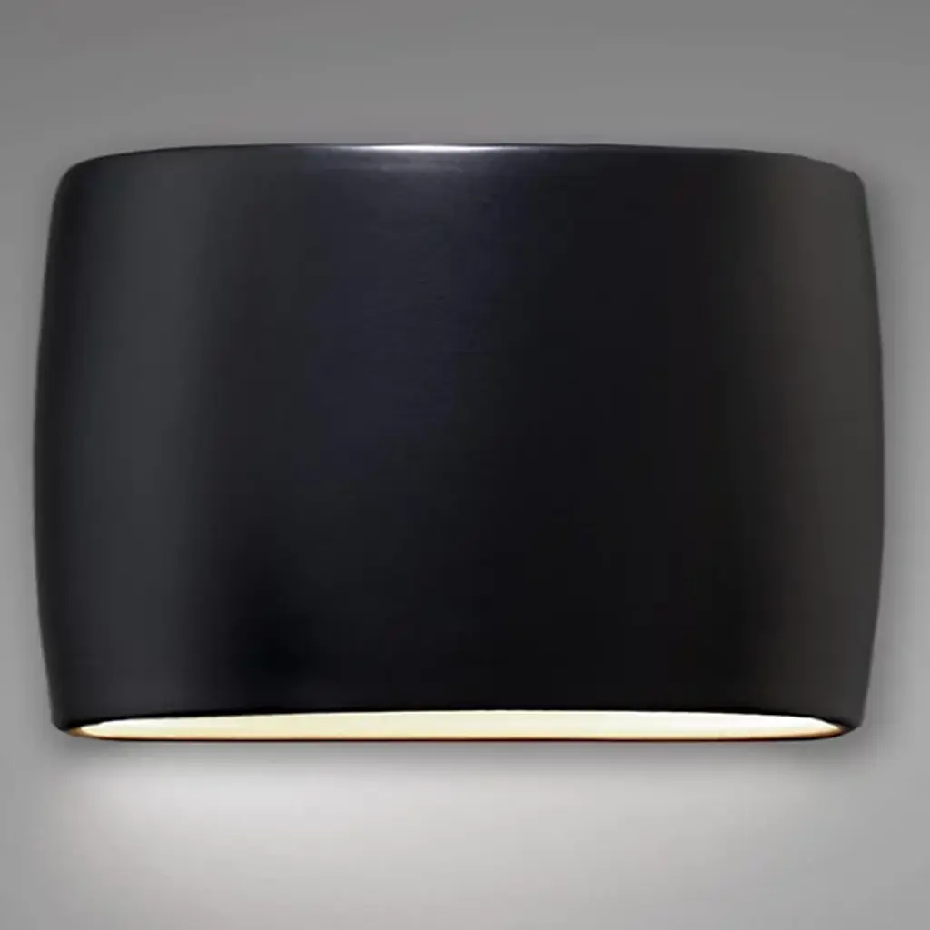Sleek, modern style meets enduring craftsmanship. Justice Design’s Ambiance Wide ADA Oval Wall Sconce - Closed Top is carefully sculpted of durable Ceramic to which artisans apply multiple layers of paint and special finishing techniques. Dimmable, LED light is sent downward, through the oval bottom, to cast even, direct light to its surroundings. This simplistic wall light infuses a space with understated, modern sensibility. Each piece is individually crafted in the USA, creating a one-of-kind design with unique variations.