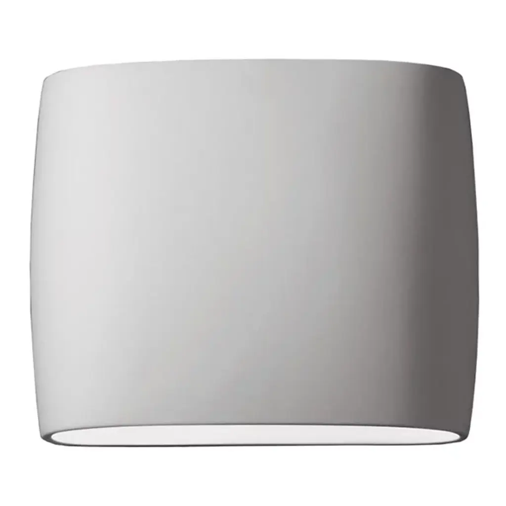 A bright visual boost for any exterior. The Justice Design Group Ambiance Oval Outdoor Downlight Wall Sconce presents a simple Ceramic structure with bold lighting capabilities, shining warm directional downlighting along patio or entryway walls. The smooth curve of the ceramic gives the piece textural appeal, while the closed top eliminates any unwanted ambient lighting while still allowing the sconce to adequately illuminate the space below. Simplicity makes this design decisively modern and modestly rustic, with the Ceramic structure bringing a classic quality to the body. With its subtle style and size, this piece can blend seamlessly with any exterior setup, working wherever you need a splash of directional light.