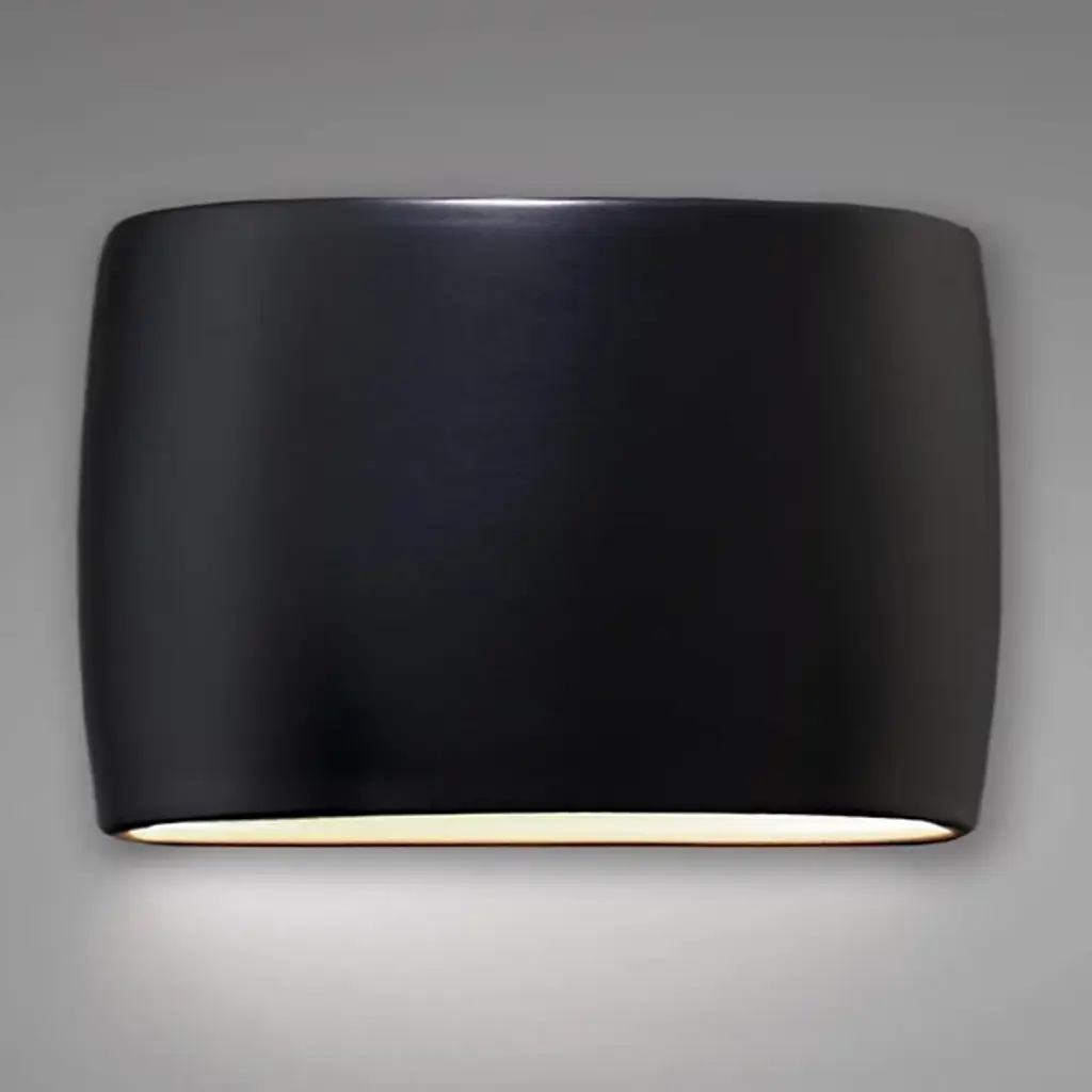 A bright visual boost for any exterior. The Justice Design Group Ambiance Oval Outdoor Downlight Wall Sconce presents a simple Ceramic structure with bold lighting capabilities, shining warm directional downlighting along patio or entryway walls. The smooth curve of the ceramic gives the piece textural appeal, while the closed top eliminates any unwanted ambient lighting while still allowing the sconce to adequately illuminate the space below. Simplicity makes this design decisively modern and modestly rustic, with the Ceramic structure bringing a classic quality to the body. With its subtle style and size, this piece can blend seamlessly with any exterior setup, working wherever you need a splash of directional light.