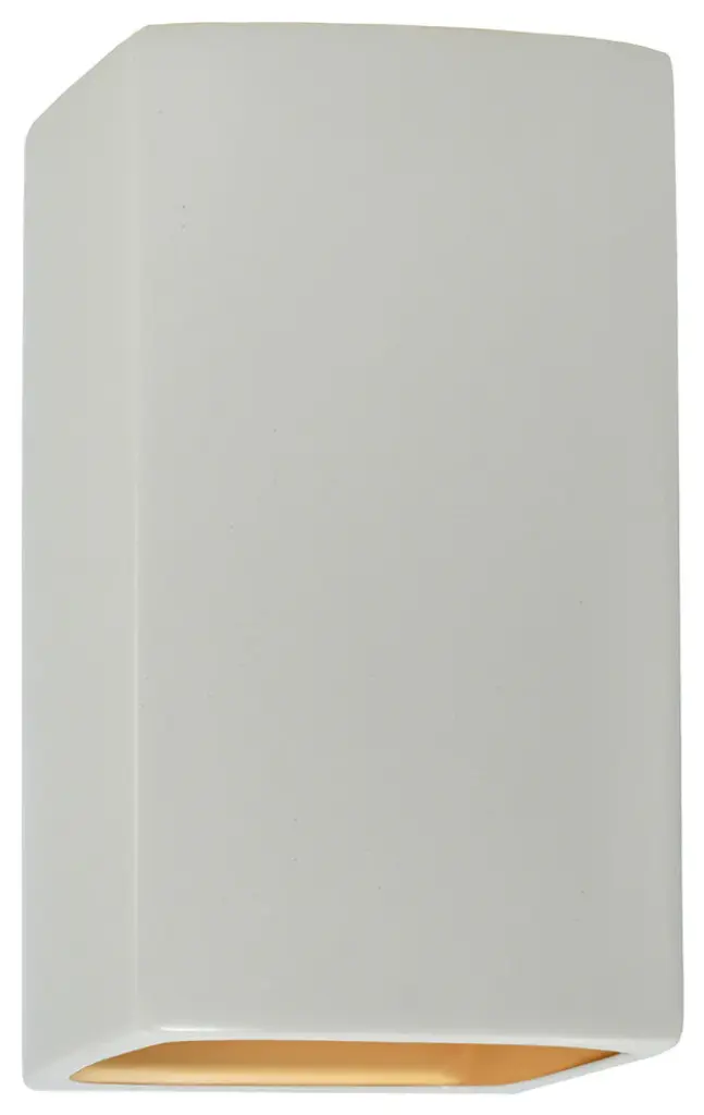 Flooding your wall with light and style. A blend of minimalist appeal and impressive functionality, the Justice Design Group Ambiance Rectangle ADA Wall Sconce - Open Top & Bottom has a casual but significant impact on your patio or entryway. With open mouths on both ends of the sconce, directional lighting washes above and below the fixture. The up and downlighting emphasize specific areas while creating a strong and far-reaching ambient glow. The structure itself has an understated presence, with the smooth Ceramic frame featuring dulled angles and thin walls that don’t distract from the powerful illumination. For any wall in the darkest corners, this exterior sconce is an excellent choice.