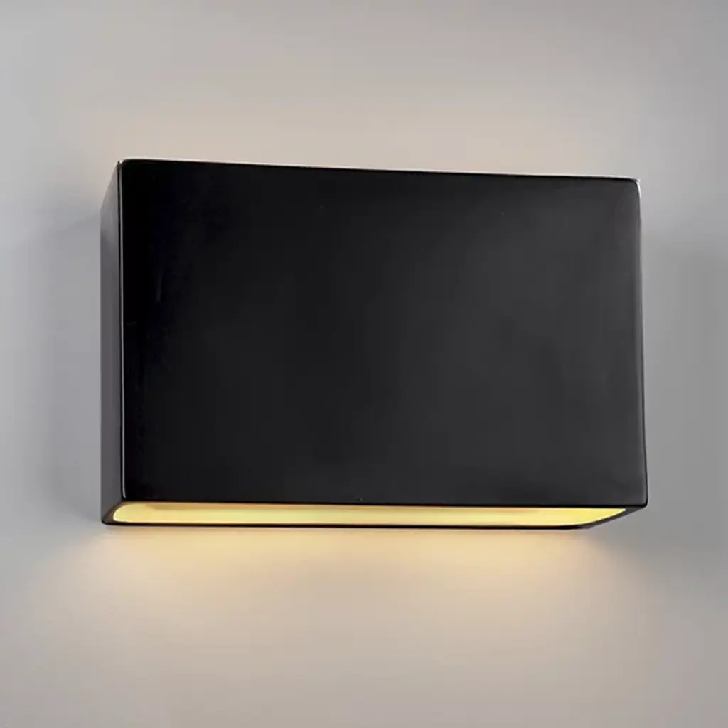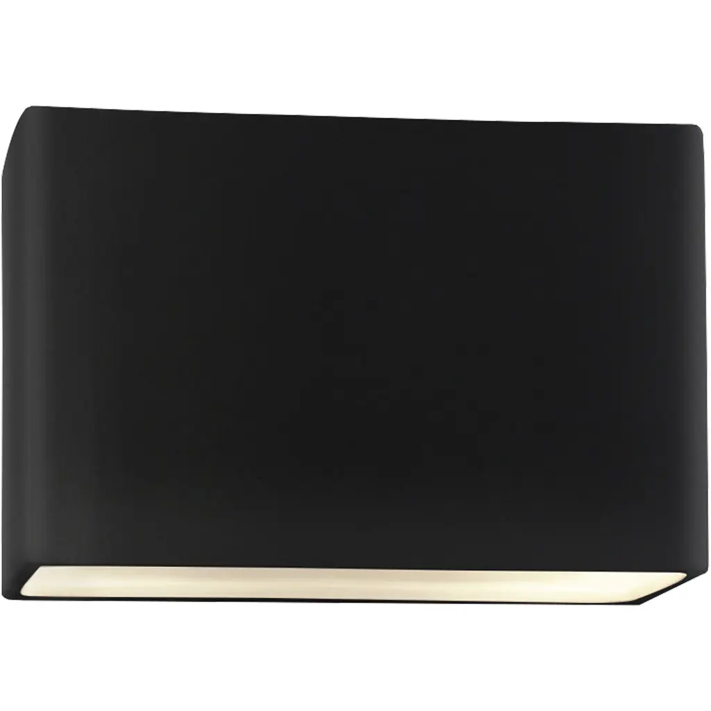 Flooding your wall with light and style. A blend of minimalist appeal and impressive functionality, the Justice Design Group Ambiance Rectangle ADA Wall Sconce - Open Top & Bottom has a casual but significant impact on your patio or entryway. With open mouths on both ends of the sconce, directional lighting washes above and below the fixture. The up and downlighting emphasize specific areas while creating a strong and far-reaching ambient glow. The structure itself has an understated presence, with the smooth Ceramic frame featuring dulled angles and thin walls that don’t distract from the powerful illumination. For any wall in the darkest corners, this exterior sconce is an excellent choice.