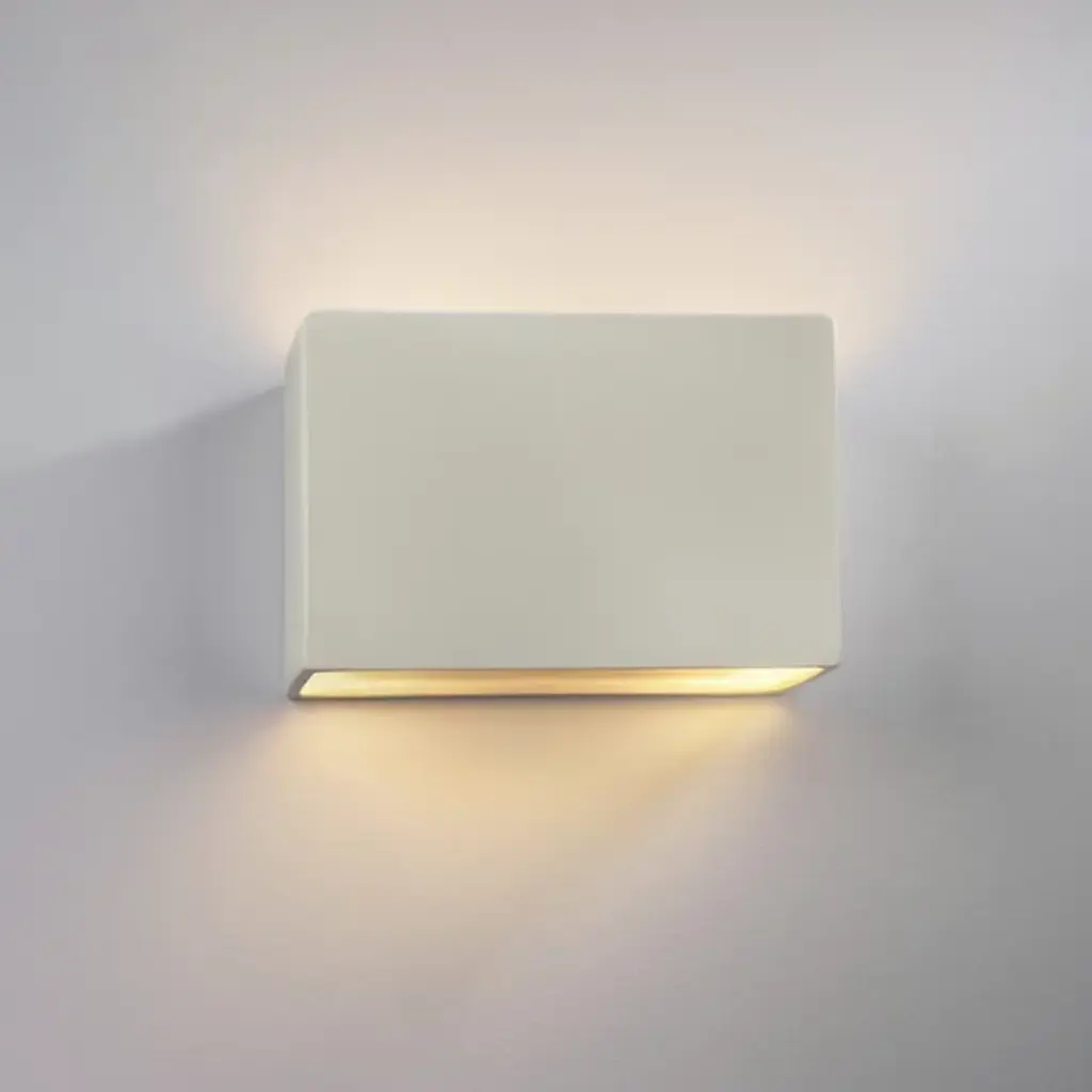 Flooding your wall with light and style. A blend of minimalist appeal and impressive functionality, the Justice Design Group Ambiance Rectangle ADA Wall Sconce - Open Top & Bottom has a casual but significant impact on your patio or entryway. With open mouths on both ends of the sconce, directional lighting washes above and below the fixture. The up and downlighting emphasize specific areas while creating a strong and far-reaching ambient glow. The structure itself has an understated presence, with the smooth Ceramic frame featuring dulled angles and thin walls that don’t distract from the powerful illumination. For any wall in the darkest corners, this exterior sconce is an excellent choice.
