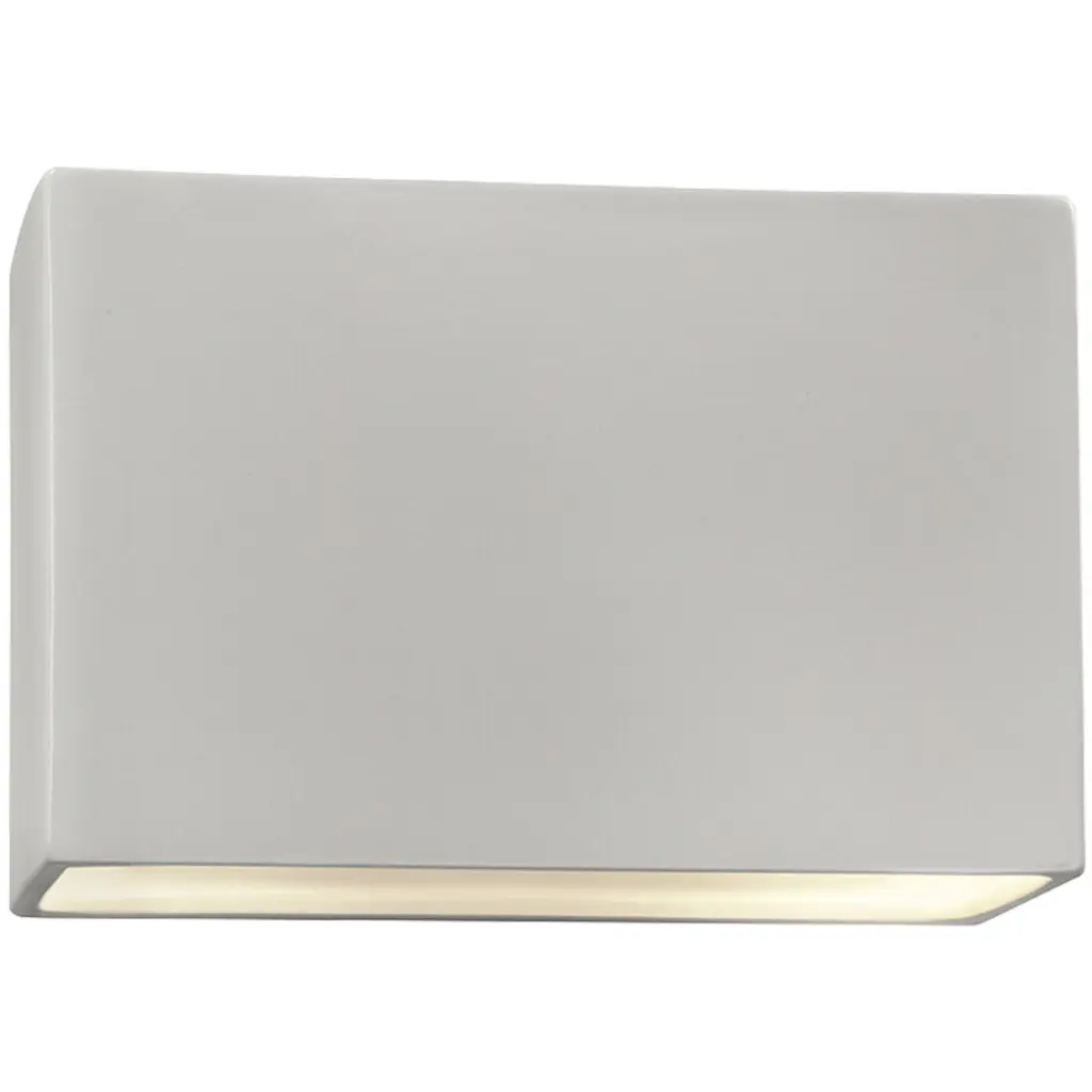Flooding your wall with light and style. A blend of minimalist appeal and impressive functionality, the Justice Design Group Ambiance Rectangle ADA Wall Sconce - Open Top & Bottom has a casual but significant impact on your patio or entryway. With open mouths on both ends of the sconce, directional lighting washes above and below the fixture. The up and downlighting emphasize specific areas while creating a strong and far-reaching ambient glow. The structure itself has an understated presence, with the smooth Ceramic frame featuring dulled angles and thin walls that don’t distract from the powerful illumination. For any wall in the darkest corners, this exterior sconce is an excellent choice.