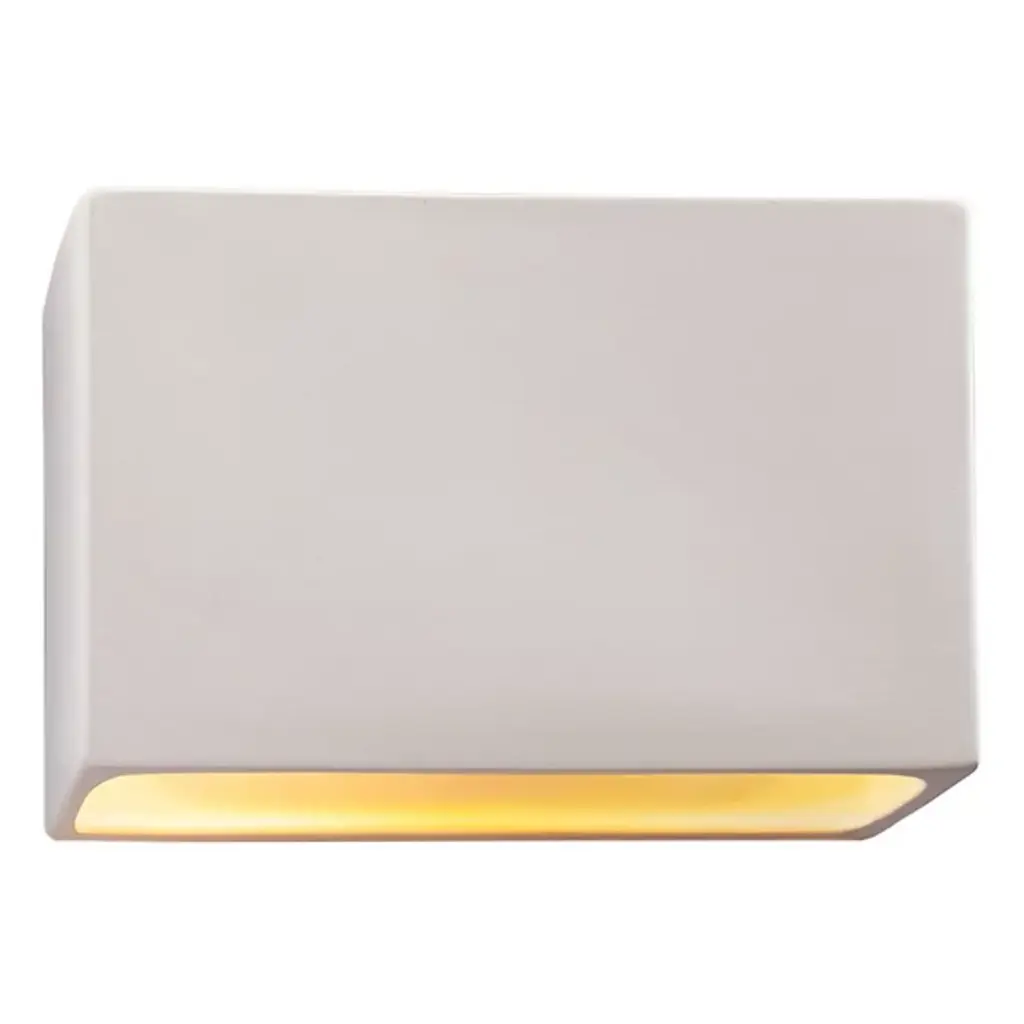 Flooding your wall with light and style. A blend of minimalist appeal and impressive functionality, the Justice Design Group Ambiance Rectangular ADA Wall Sconce - Open Top & Bottom has a casual but significant impact on your patio or entryway. With open mouths on both ends of the sconce, directional lighting washes above and below the fixture. The up and downlighting emphasize specific areas while creating a strong and far-reaching ambient glow. The structure itself has an understated presence, with the smooth Ceramic frame featuring dulled angles and thin walls that don’t distract from the powerful illumination. For any wall in the darkest corners, this exterior sconce is an excellent choice.