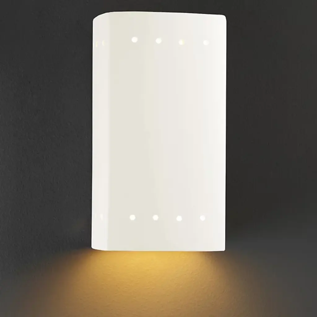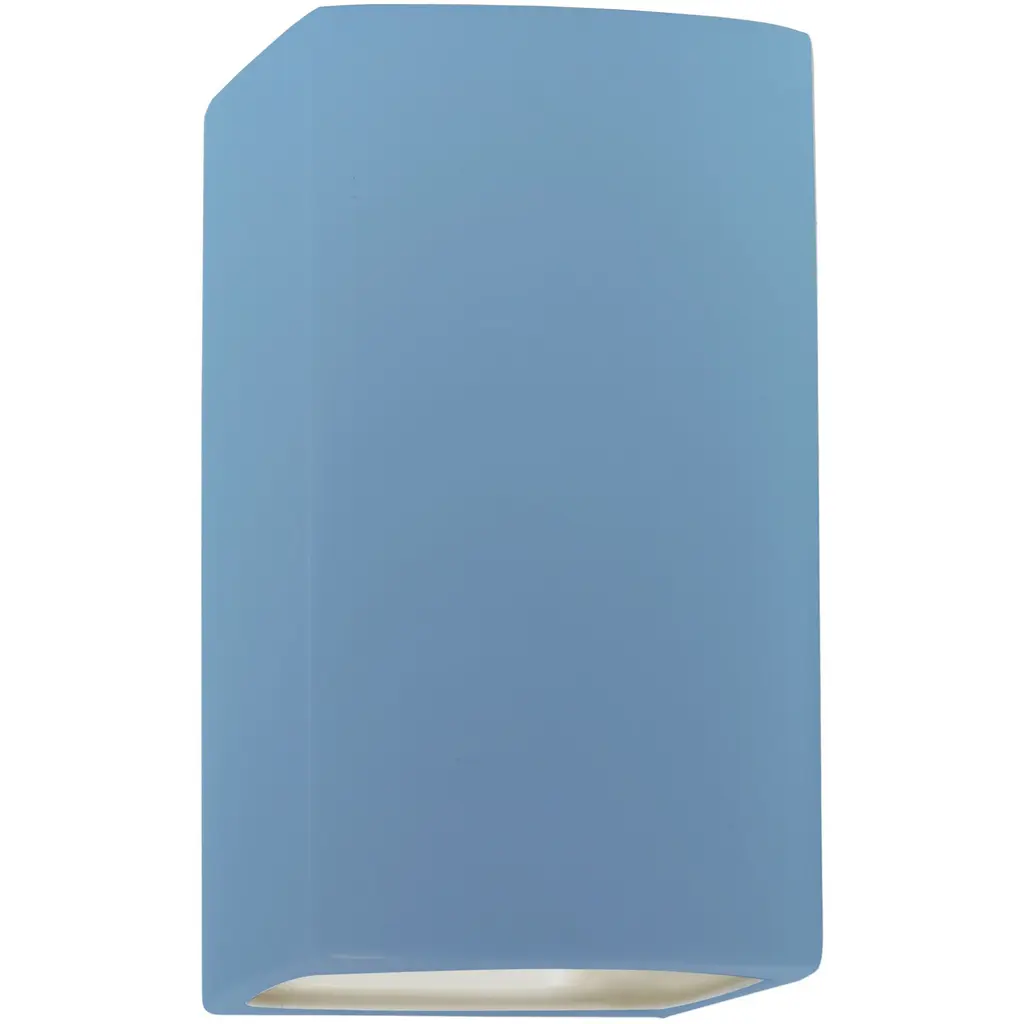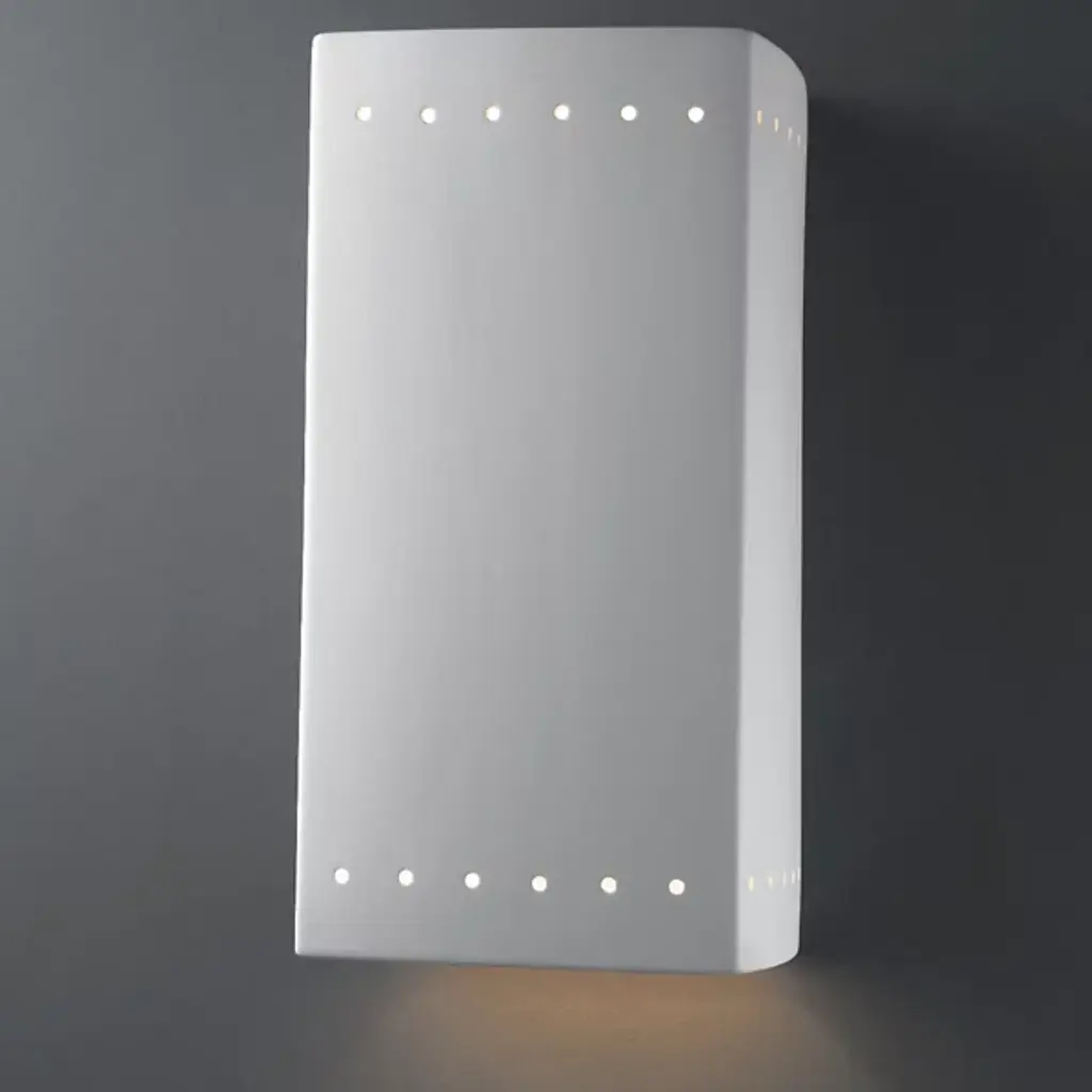 The Ambiance Rectangular Outdoor Wall Sconce by Justice Design Group keeps the light right where it's needed in outdoor spaces. Handmade out of high-quality Ceramic, this rectangular sconce is closed at the top, effectively directing useful light downward while also helping to keep the interior watertight. This versatile outdoor lighting design can be made to stand out or blend-in with the surrounding surface. Regardless of how it needs to look aesthetically, it will always provide bright direct lighting to help guide people along pathways and illuminate entrances, as well as accent the unique textures of whatever exterior wall onto which it’s mounted.