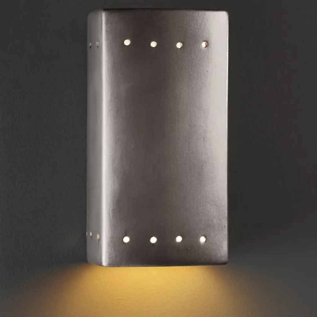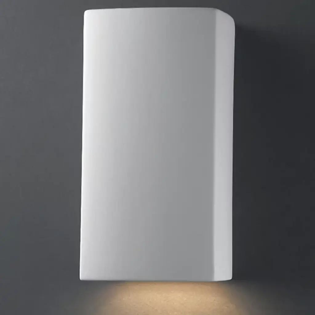 The Ambiance Rectangular Outdoor Wall Sconce by Justice Design Group keeps the light right where it's needed in outdoor spaces. Handmade out of high-quality Ceramic, this rectangular sconce is closed at the top, effectively directing useful light downward while also helping to keep the interior watertight. This versatile outdoor lighting design can be made to stand out or blend-in with the surrounding surface. Regardless of how it needs to look aesthetically, it will always provide bright direct lighting to help guide people along pathways and illuminate entrances, as well as accent the unique textures of whatever exterior wall onto which it’s mounted.