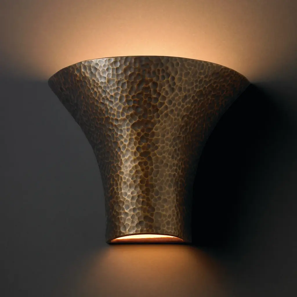 Ambiance Round Flared, Open Top/bottom Sconce, Hammered Brass, E26