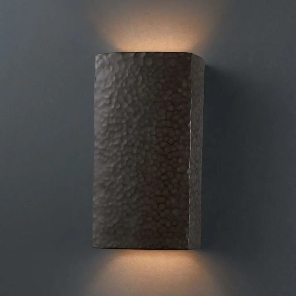 Ambiance, Small Ada Rectangle, Open Top & Bottom Wall Sconce, Hammered Iron