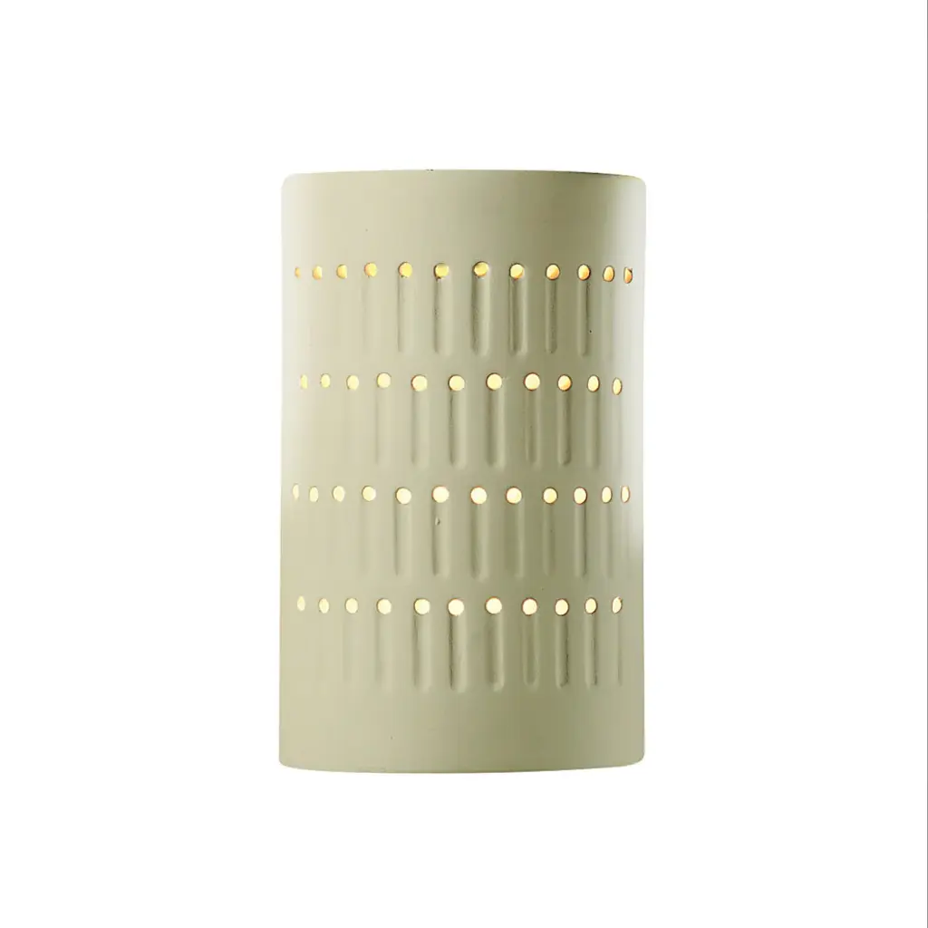 Ambiance Small Cactus Cylinder Wall Sconce, Open, Matte White, Gold, E26