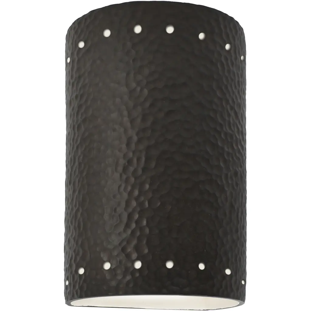 Ambiance, Small Cylinder, Open Top & Bottom Wall Sconce, Hammered Iron